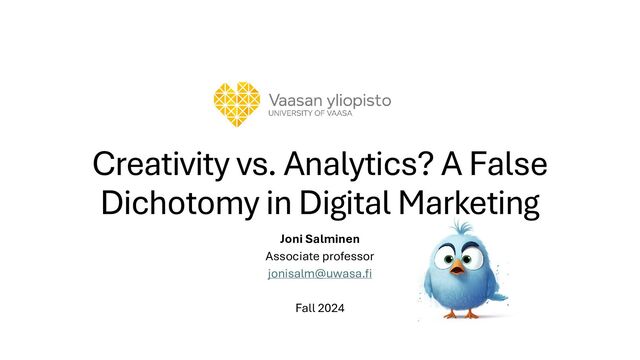 subfields require both analytical and creative orientation (though emphasis varies) • For example, content marketing, social media marketing, influencer marketing: how do you know if something works? (You need to read analytics) • The same for ads and SEO: you don’t have good content, nothing will happen. • …of course, the level of specialized skills varies, e.g. analytics: • One metric → a few KPIs → funnel analytics → analytics installation and configuration → analytics strategy, management, and leadership • Creative vs. analytical can be a harmful dichotomy – a digital marketer is neither a numbers person or a creative person; he or she is both!
