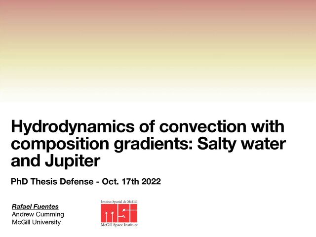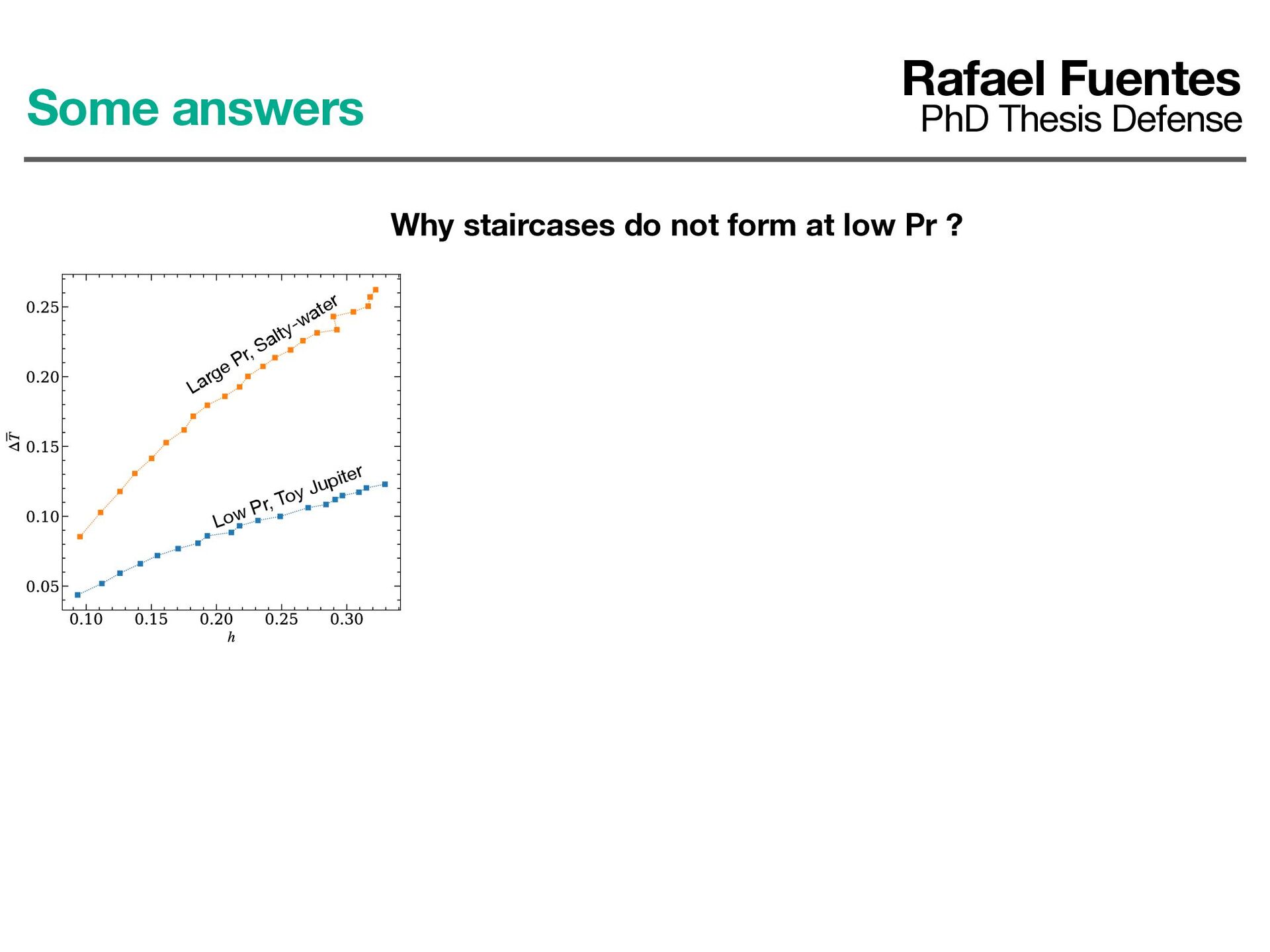 the planet. It can explain in fl ated radii of some exoplanets (Chabrier and Bara ff e 2007) • Reduction in cooling rate due to staircases could also explain Saturn’s higher luminosity (Leconte and Chabrier 2013) Adiabatic models Models with layered convection Composition gradients need to be considered in theoretical/numerical models Layered convection Rafael Fuentes PhD Thesis Defense
