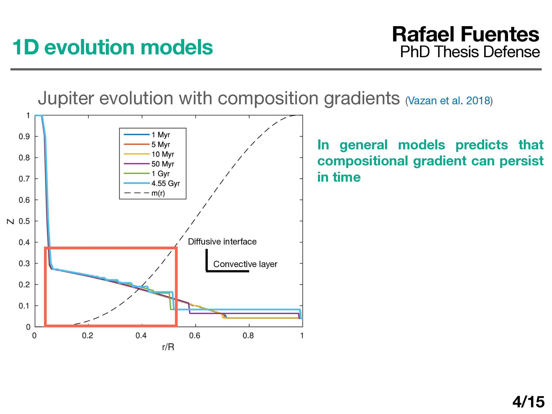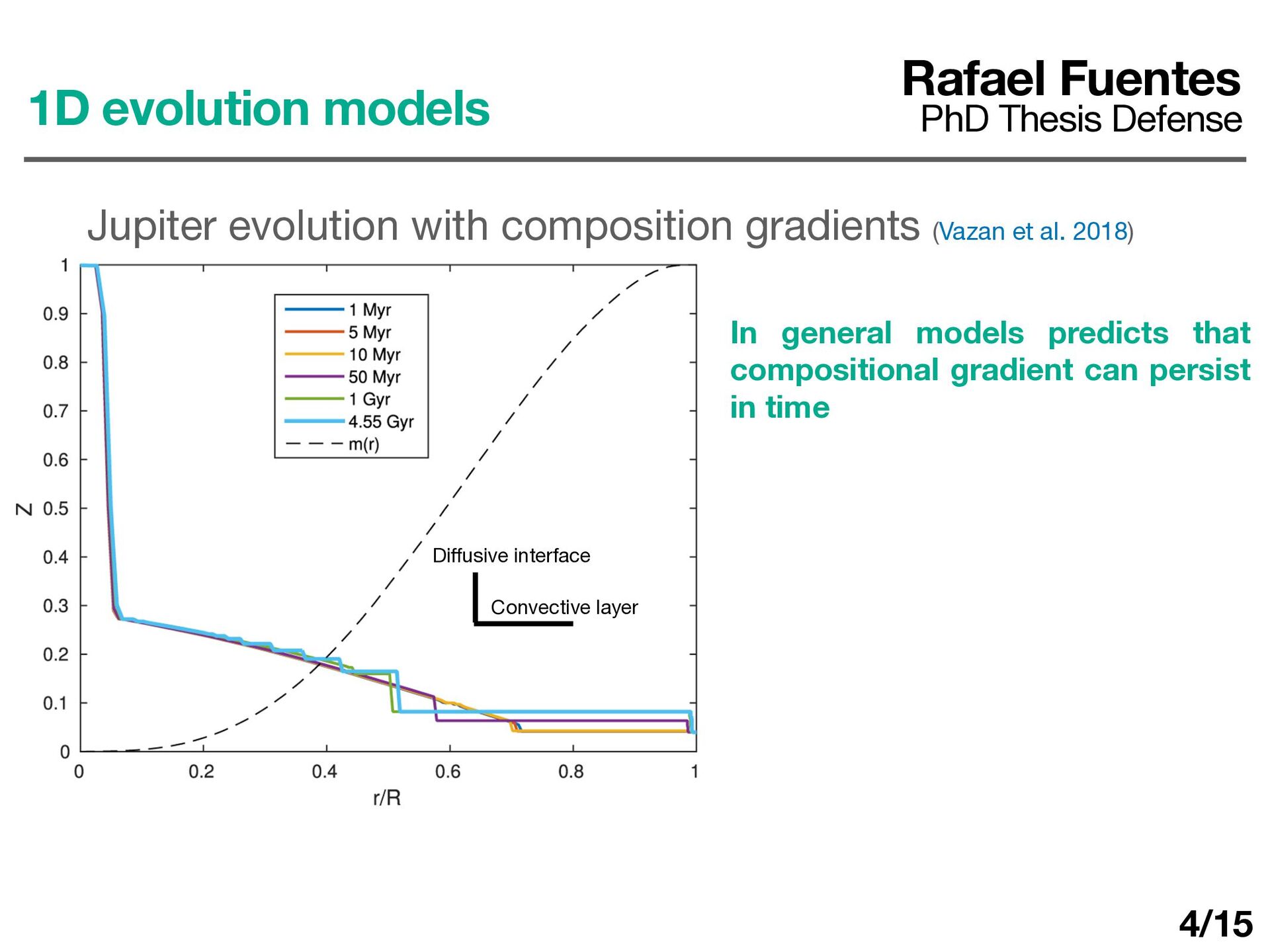 evolution models Rafael Fuentes PhD Thesis Defense In general models predicts that compositional gradient can persist in time 4/15 Di ff usive interface Convective layer
