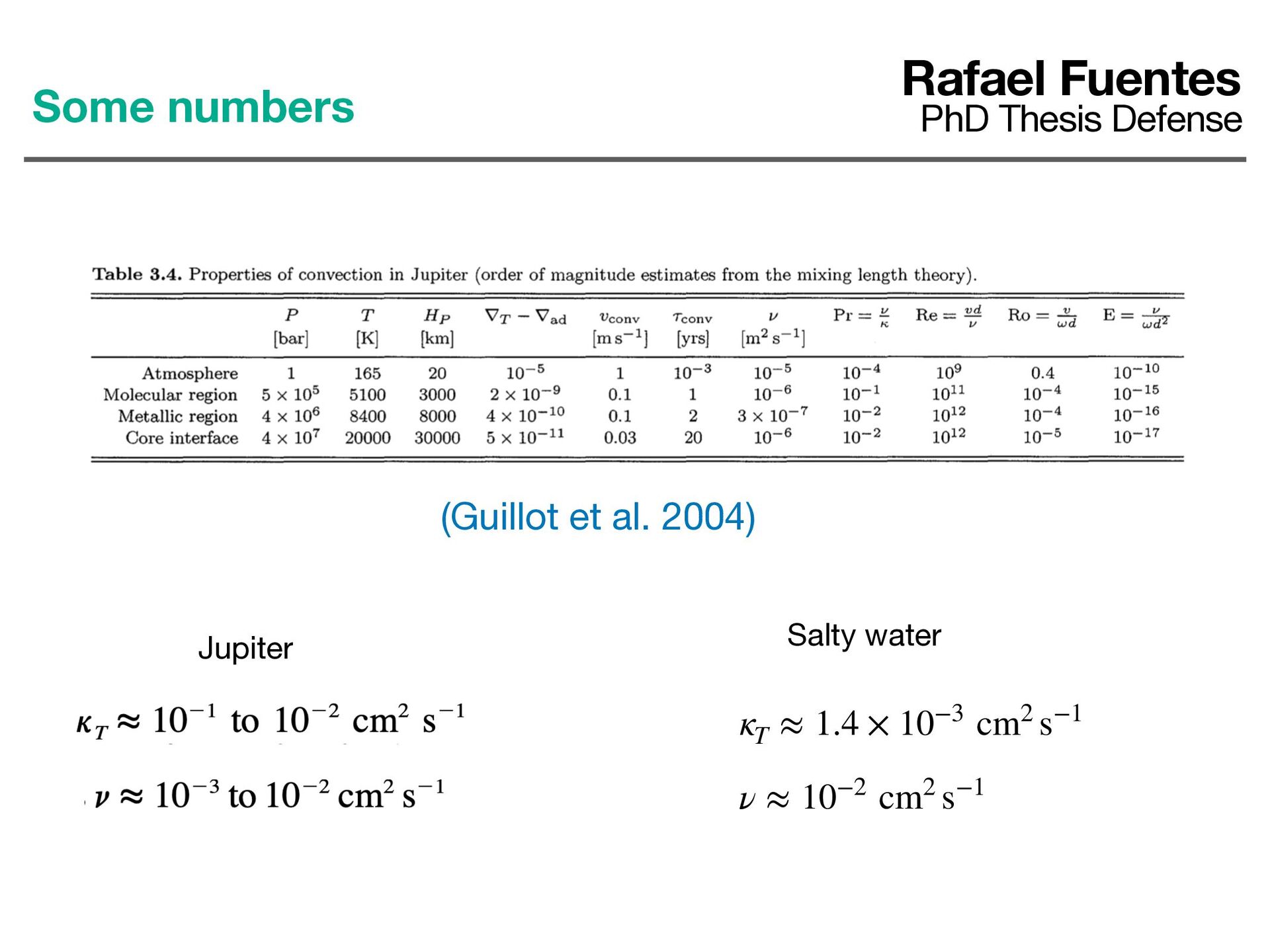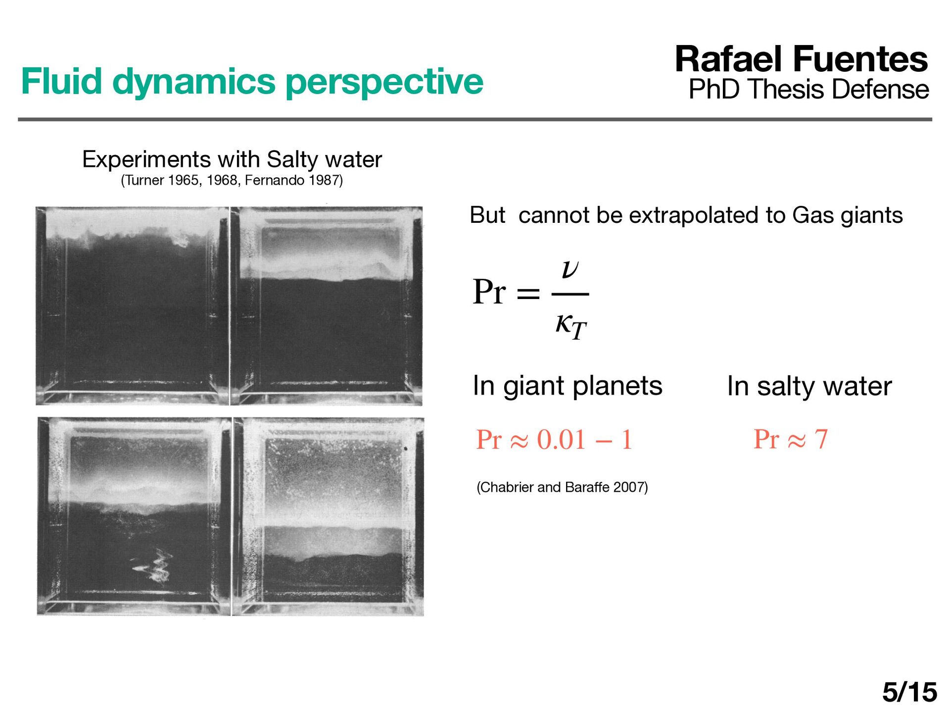 Salty water (Turner 1965, 1968, Fernando 1987) Pr = ν κT In salty water Pr ≈ 7 In giant planets Pr ≈ 0.01 − 1 (Chabrier and Bara ff e 2007) But cannot be extrapolated to Gas giants 5/15