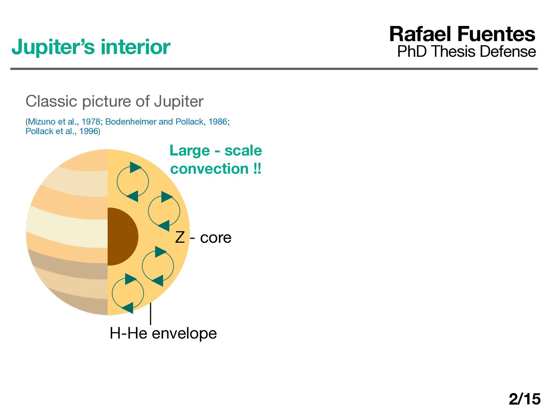 et al., 1978; Bodenheimer and Pollack, 1986; Pollack et al., 1996) Large - scale convection !! Jupiter’s interior Rafael Fuentes PhD Thesis Defense 2/15