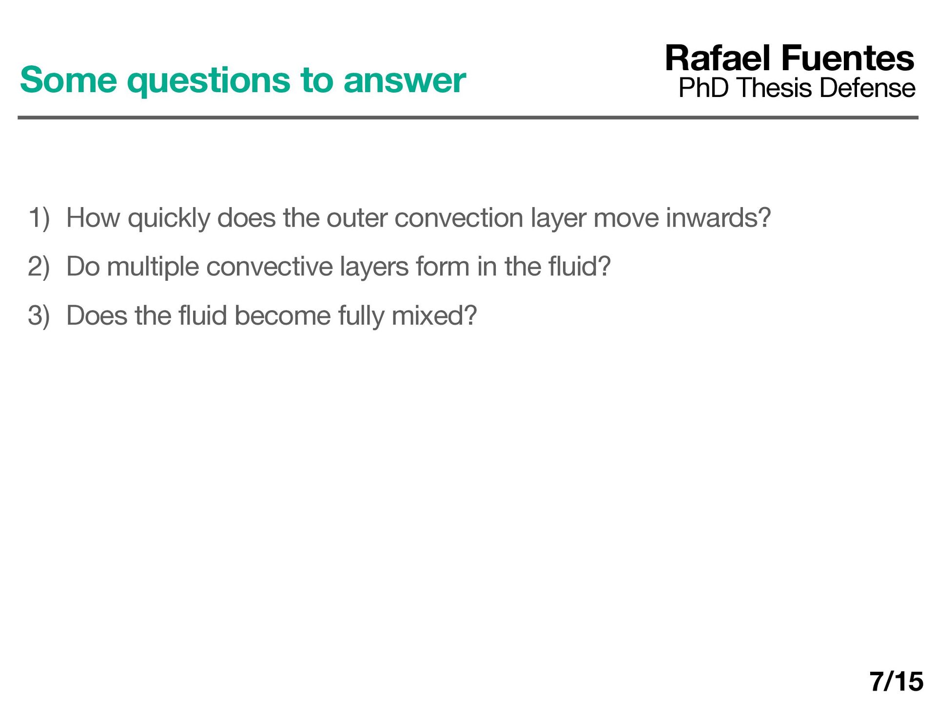 How quickly does the outer convection layer move inwards? 2) Do multiple convective layers form in the fluid? 3) Does the fluid become fully mixed? 7/15