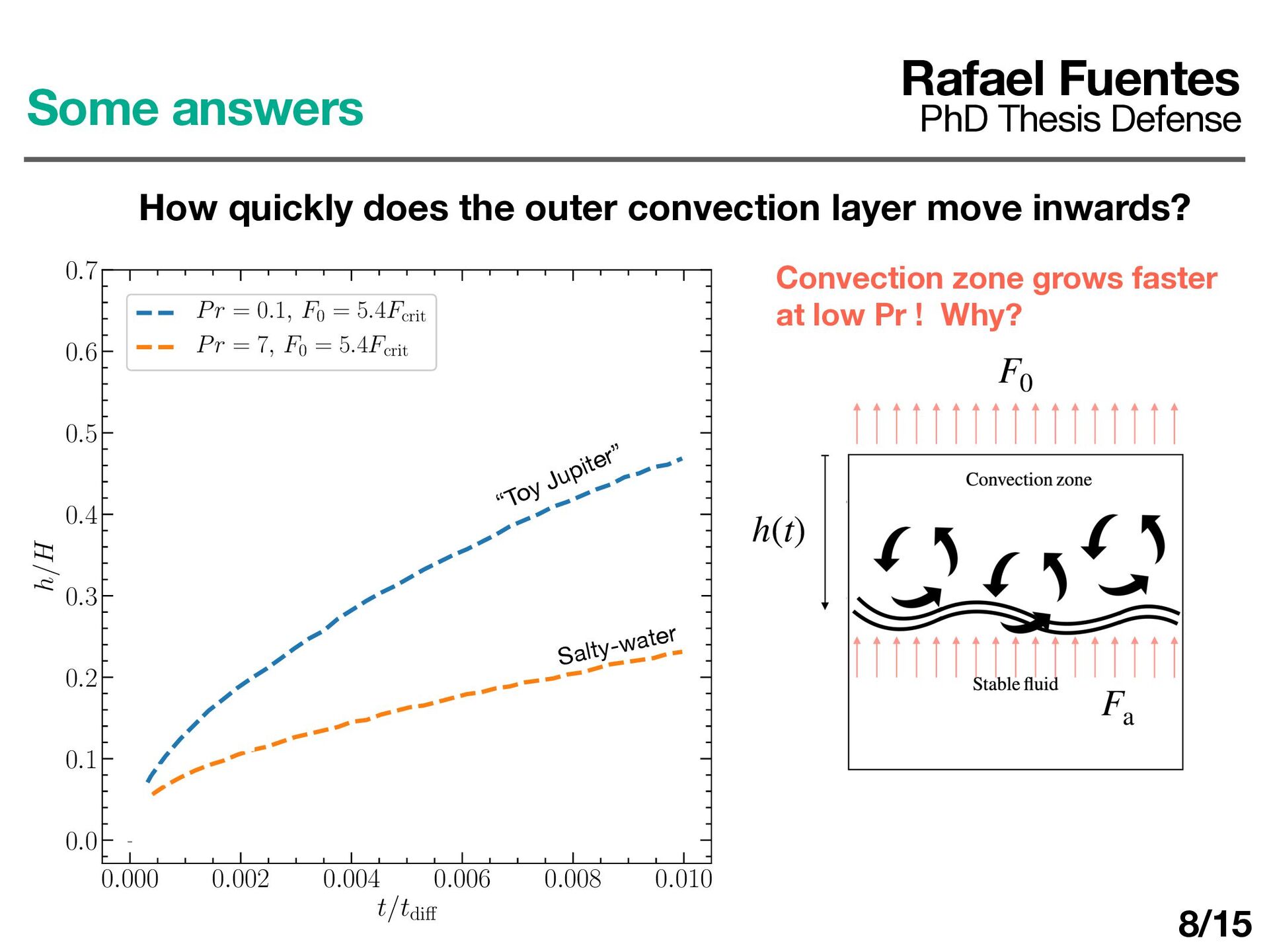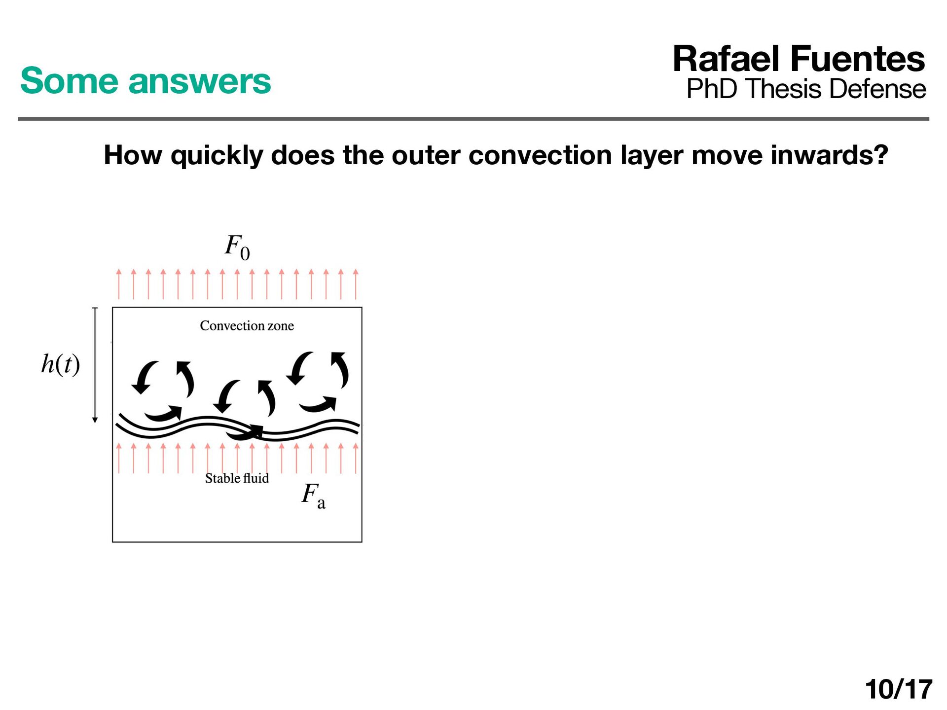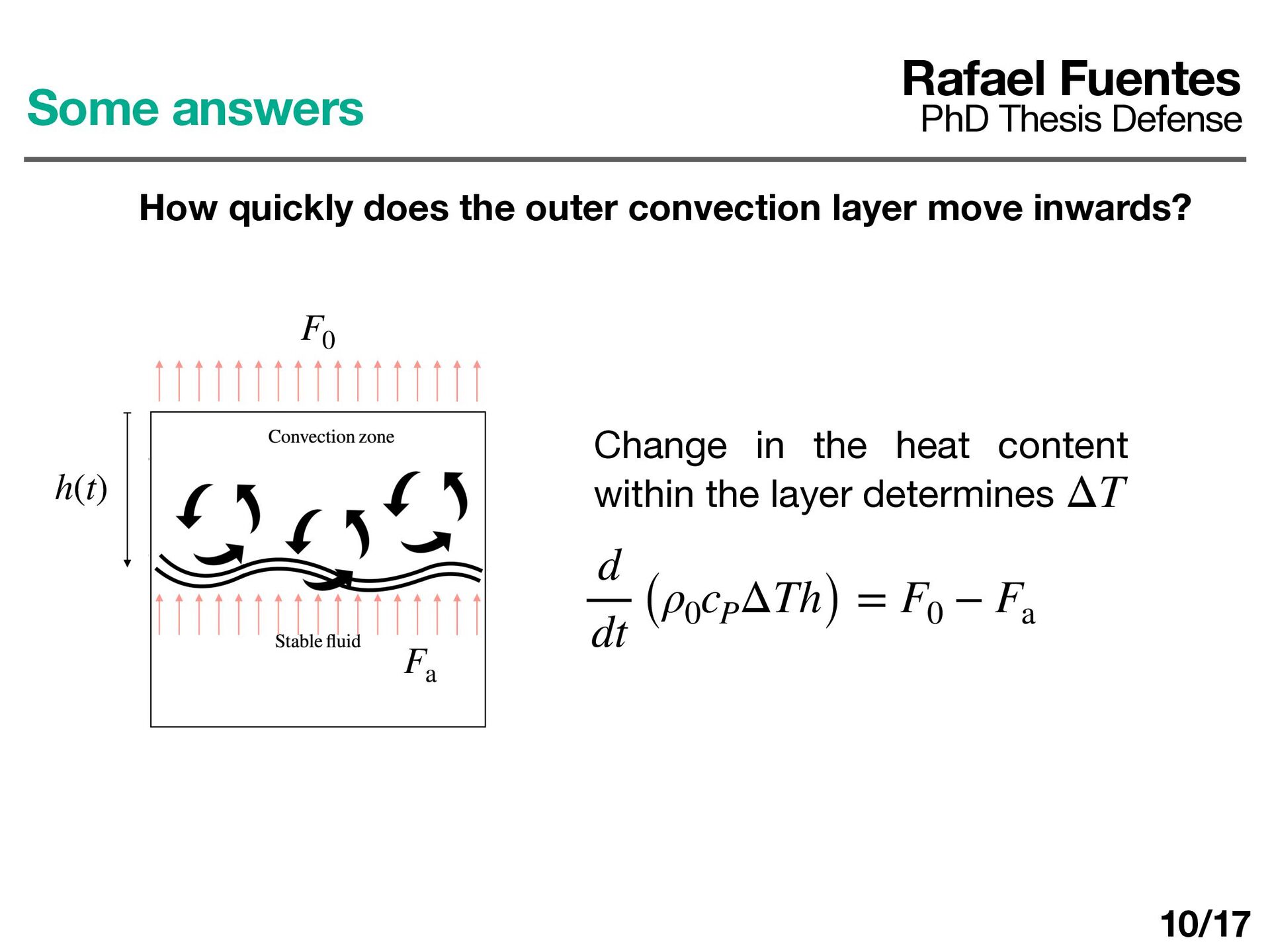 layer determines ΔT d dt (ρ0 cP ΔTh) = F0 − Fa Rafael Fuentes PhD Thesis Defense Some answers How quickly does the outer convection layer move inwards? 10/17