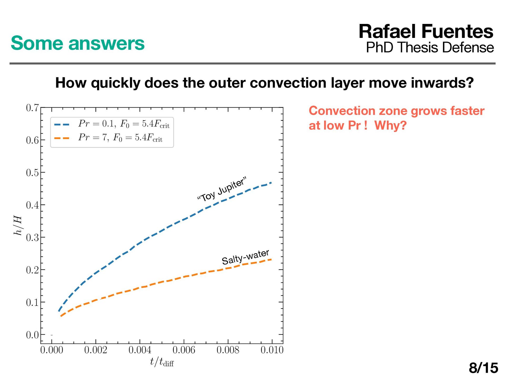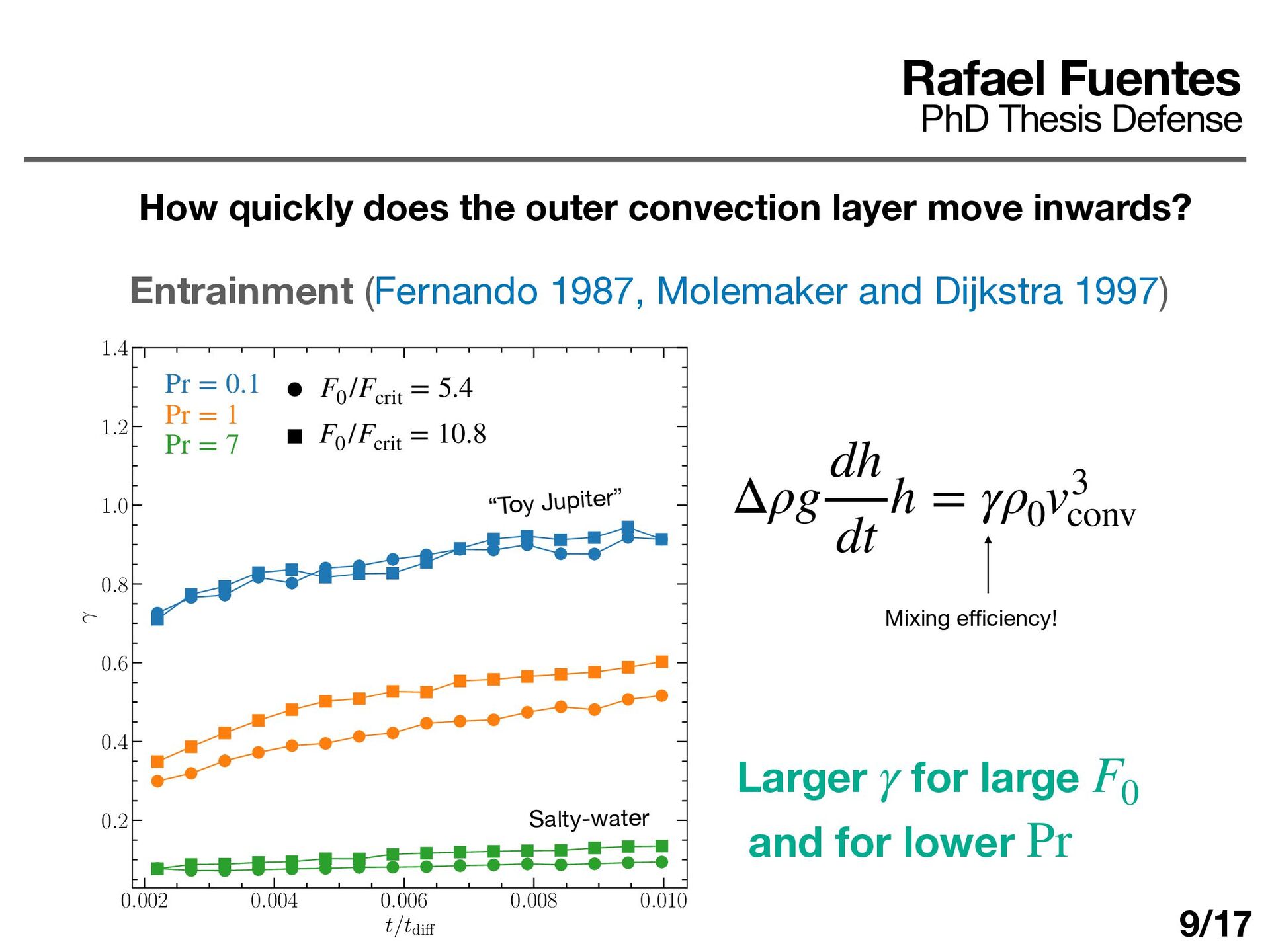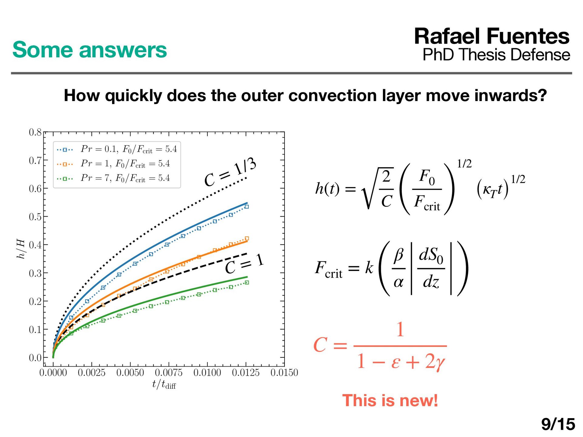 layer determines ΔT d dt (ρ0 cP ΔTh) = F0 − Fa Rafael Fuentes PhD Thesis Defense Some answers How quickly does the outer convection layer move inwards? 10/17