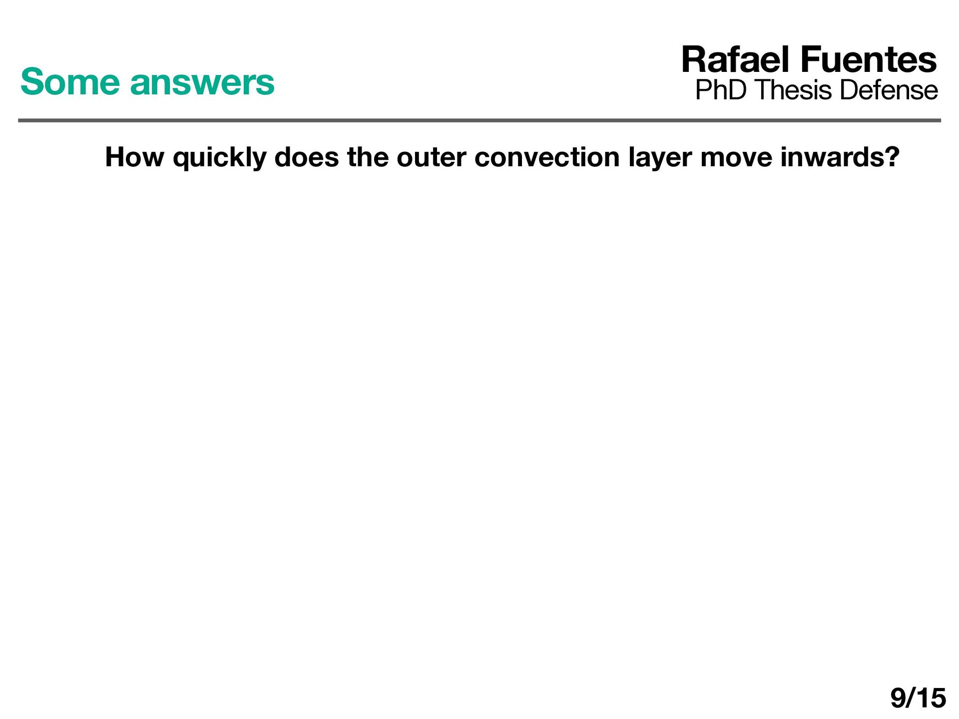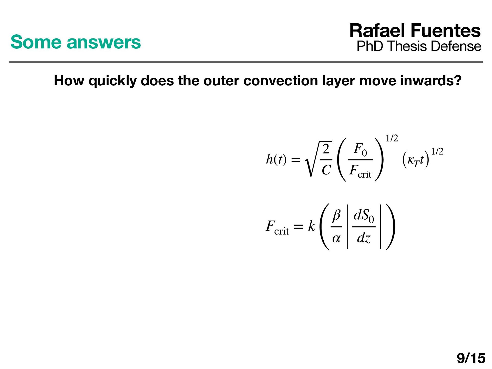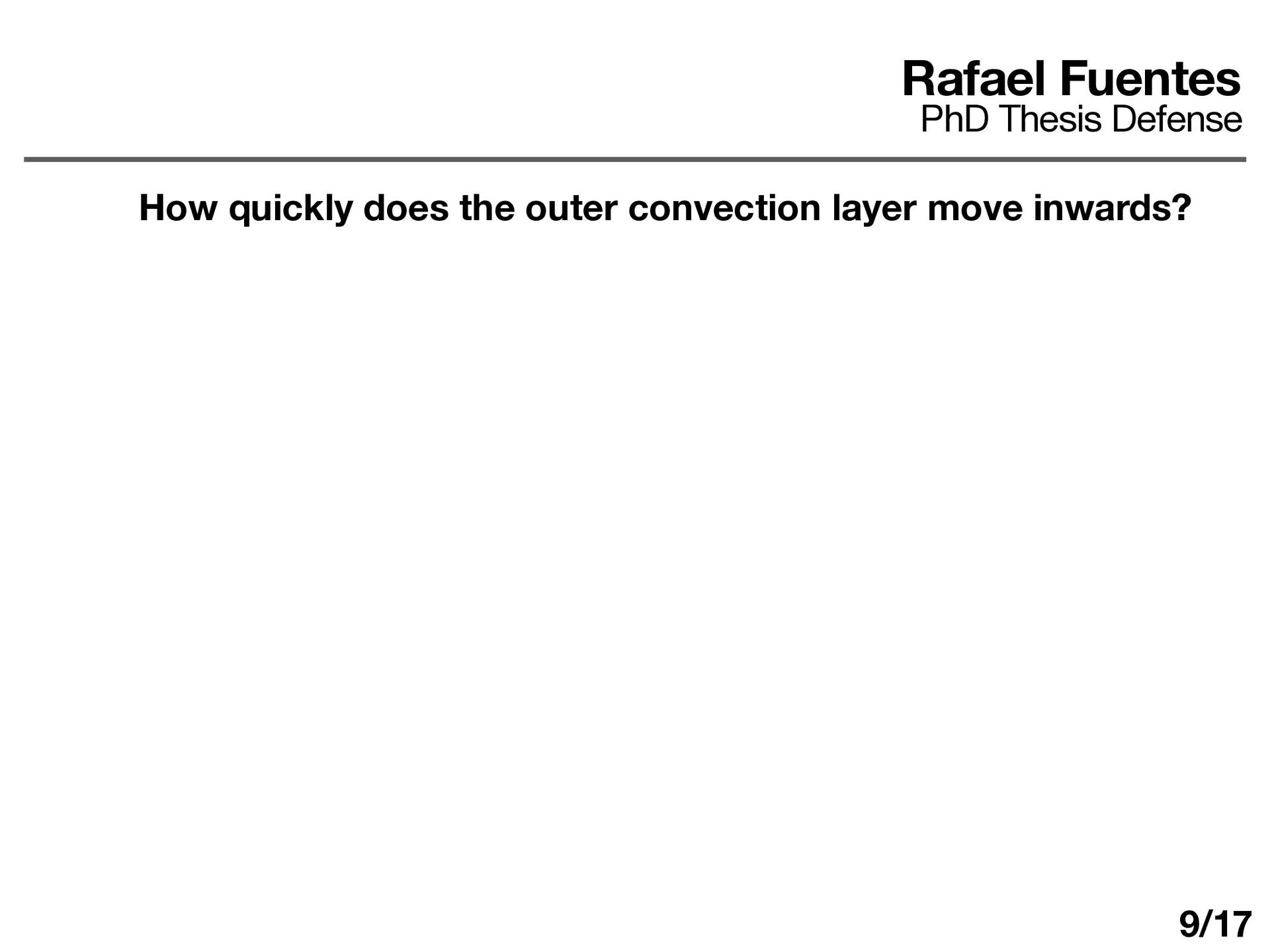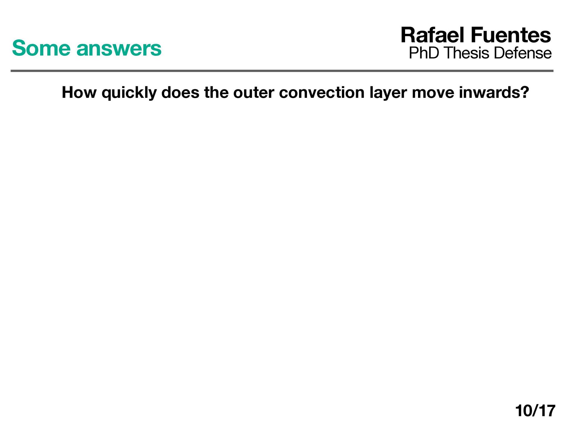 layer determines ΔT d dt (ρ0 cP ΔTh) = F0 − Fa Fa = εF0 ε ≈ 0.25 − 0.5 Rafael Fuentes PhD Thesis Defense Some answers How quickly does the outer convection layer move inwards? 10/17