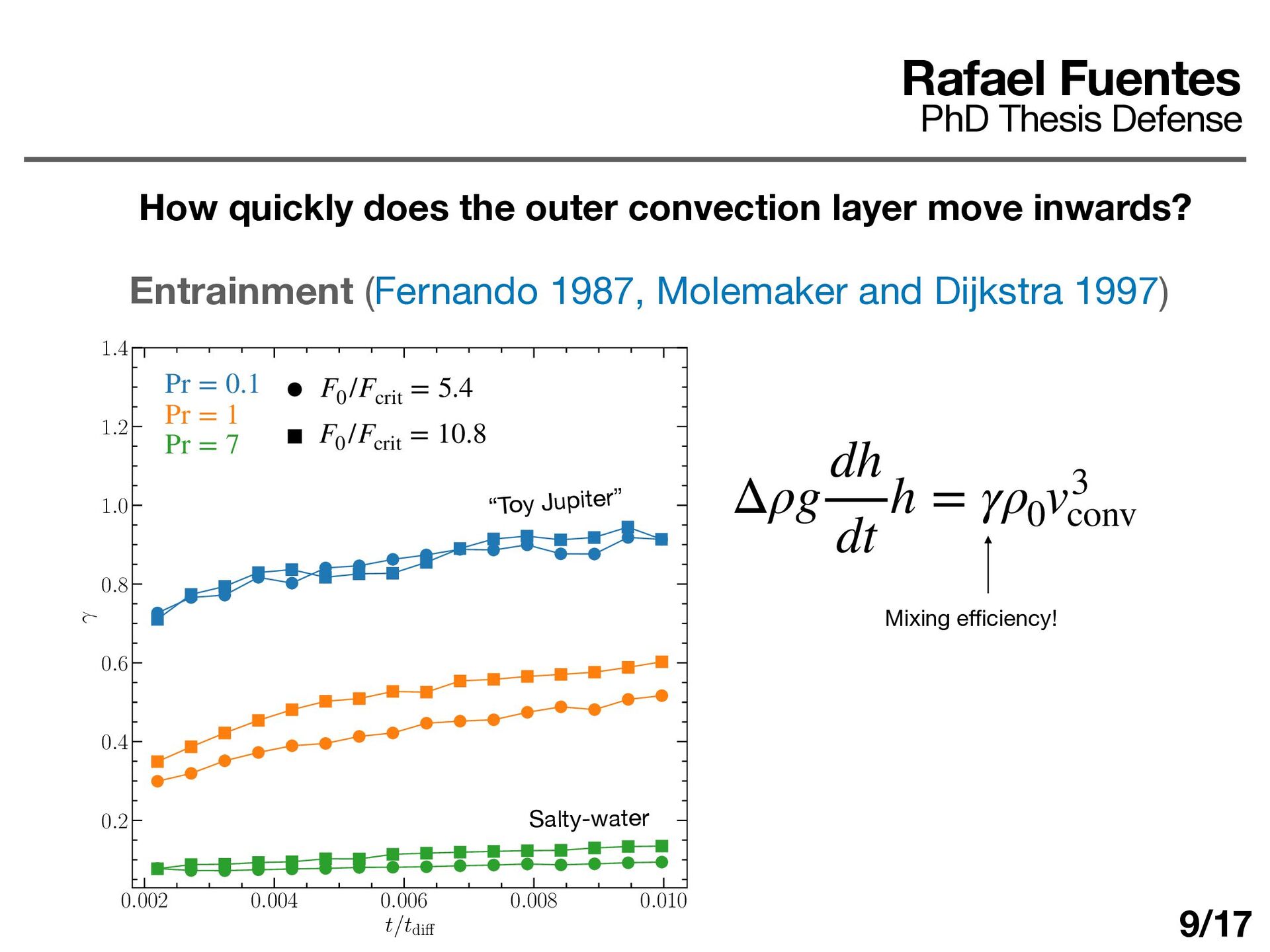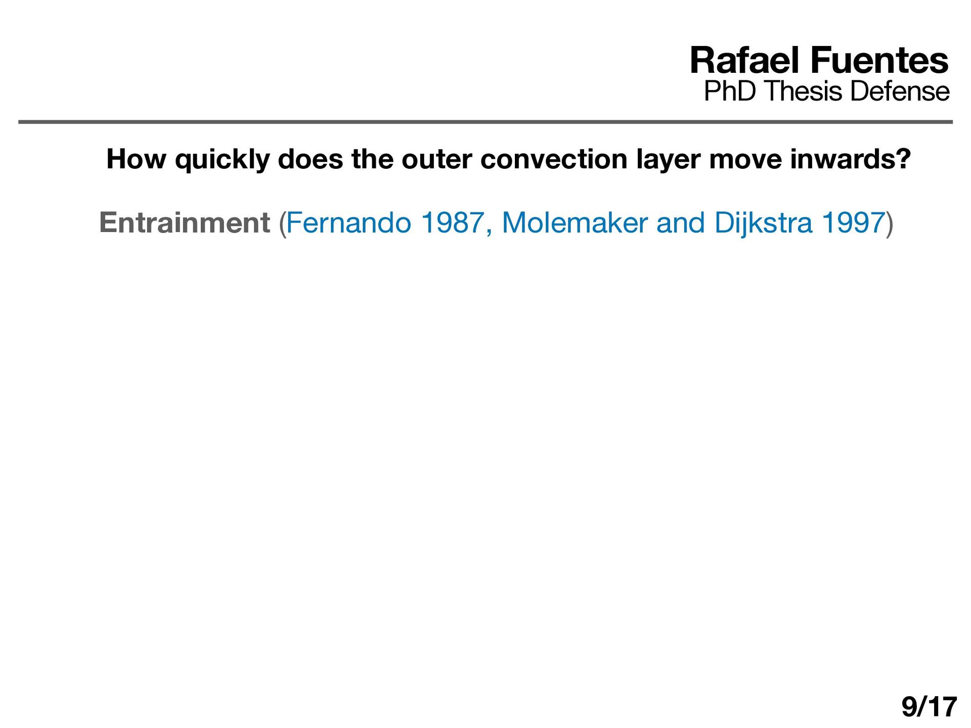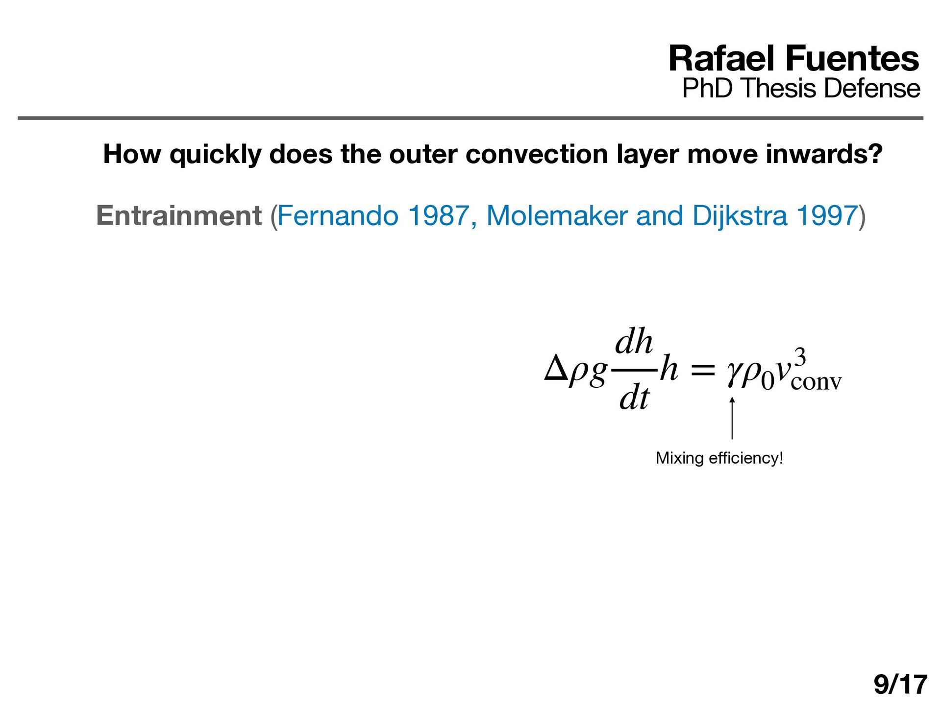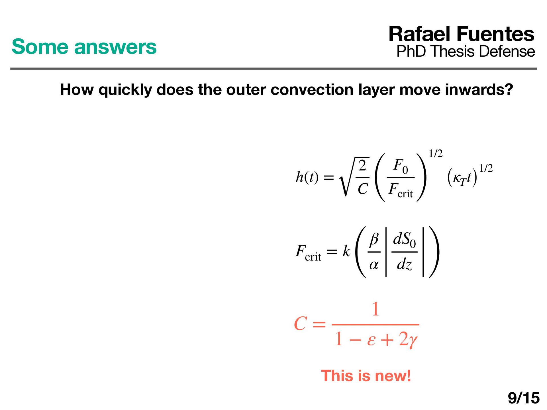 layer determines ΔT d dt (ρ0 cP ΔTh) = F0 − Fa Fa = εF0 ε ≈ 0.25 − 0.5 Rafael Fuentes PhD Thesis Defense Some answers How quickly does the outer convection layer move inwards? 10/17