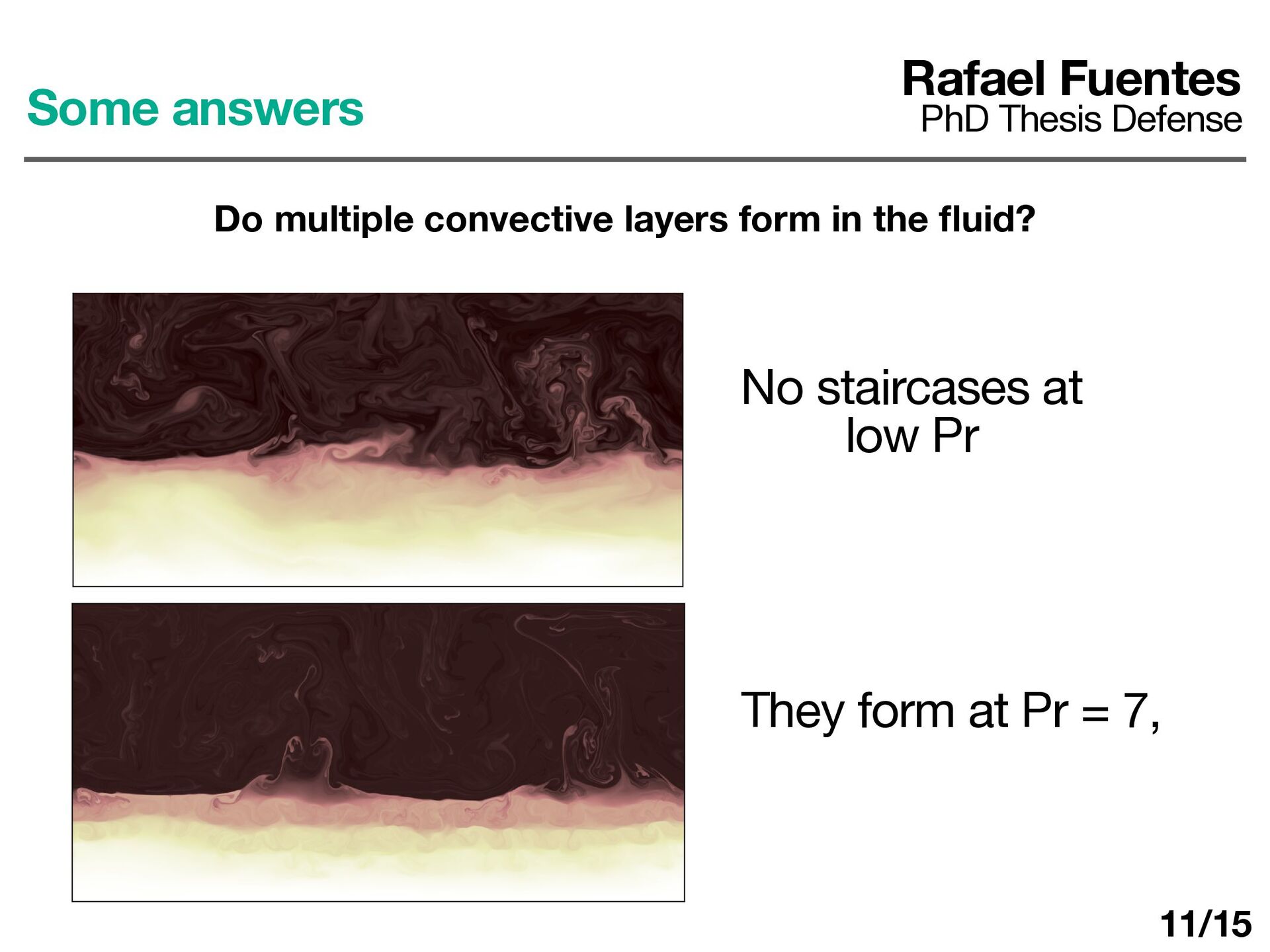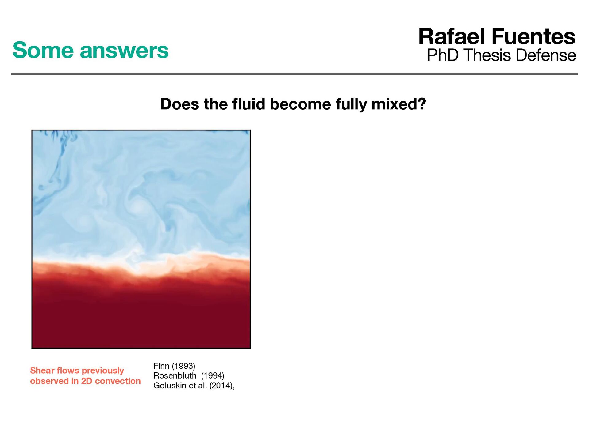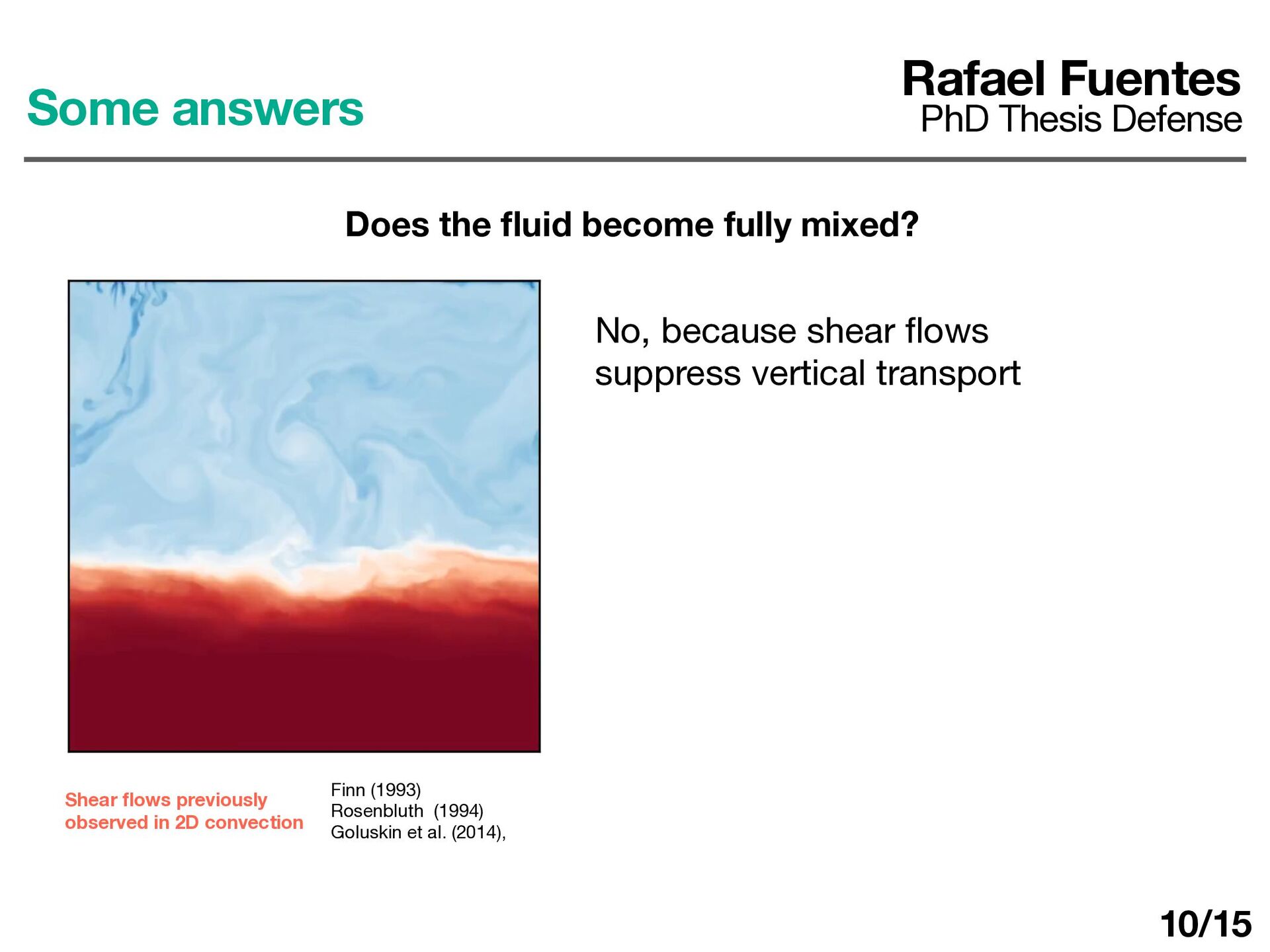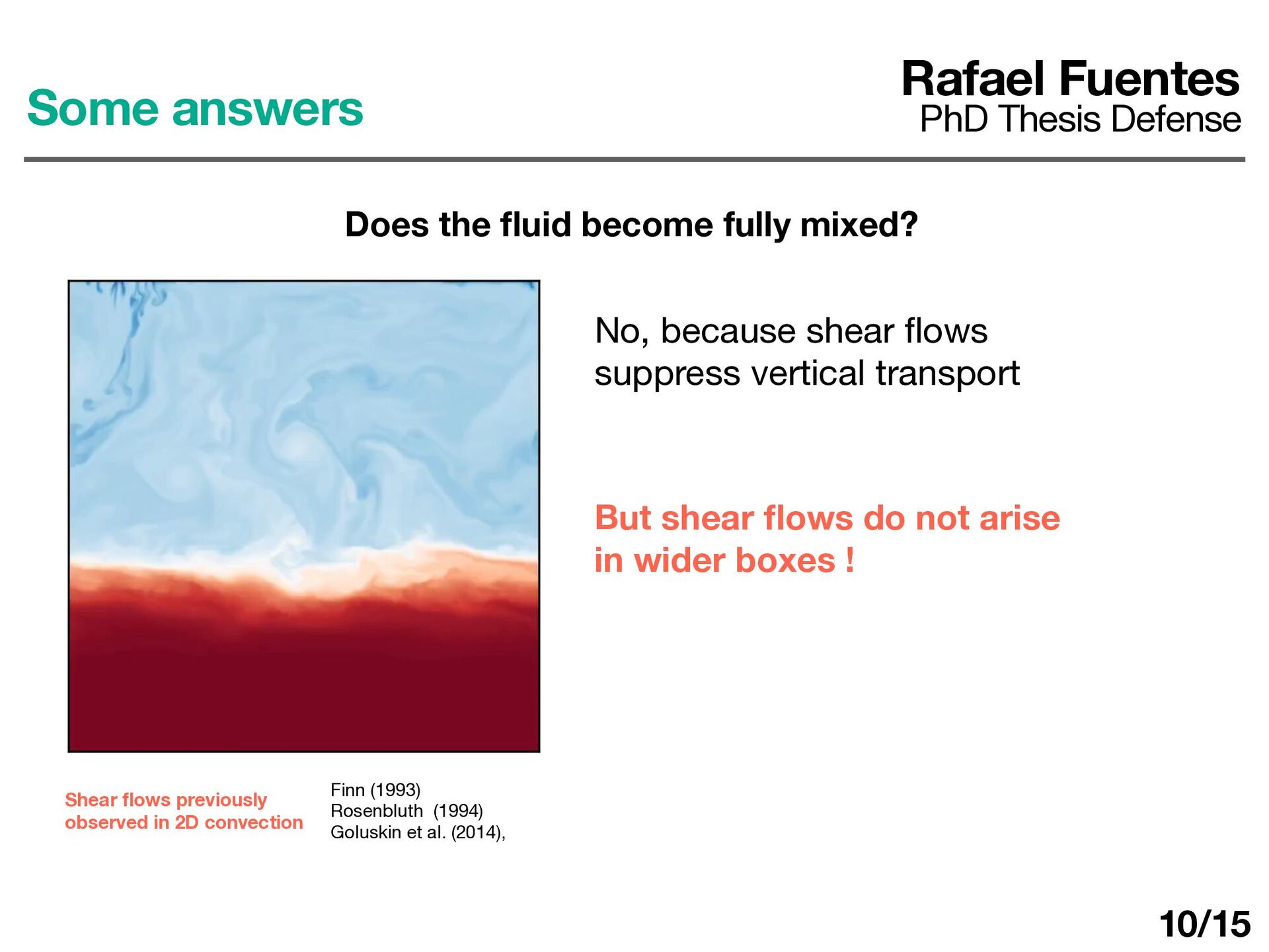 ows previously observed in 2D convection Some answers Rafael Fuentes PhD Thesis Defense Does the fl uid become fully mixed? No, because shear fl ows suppress vertical transport But shear fl ows do not arise in wider boxes ! 10/15