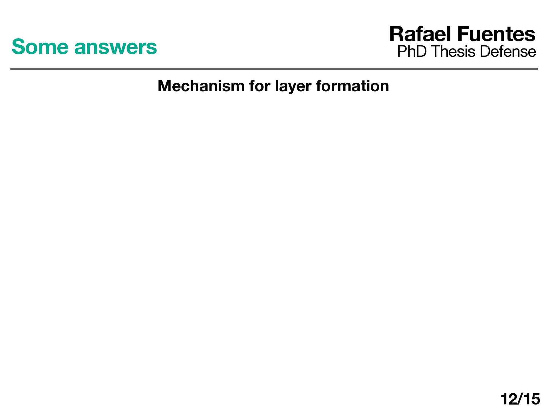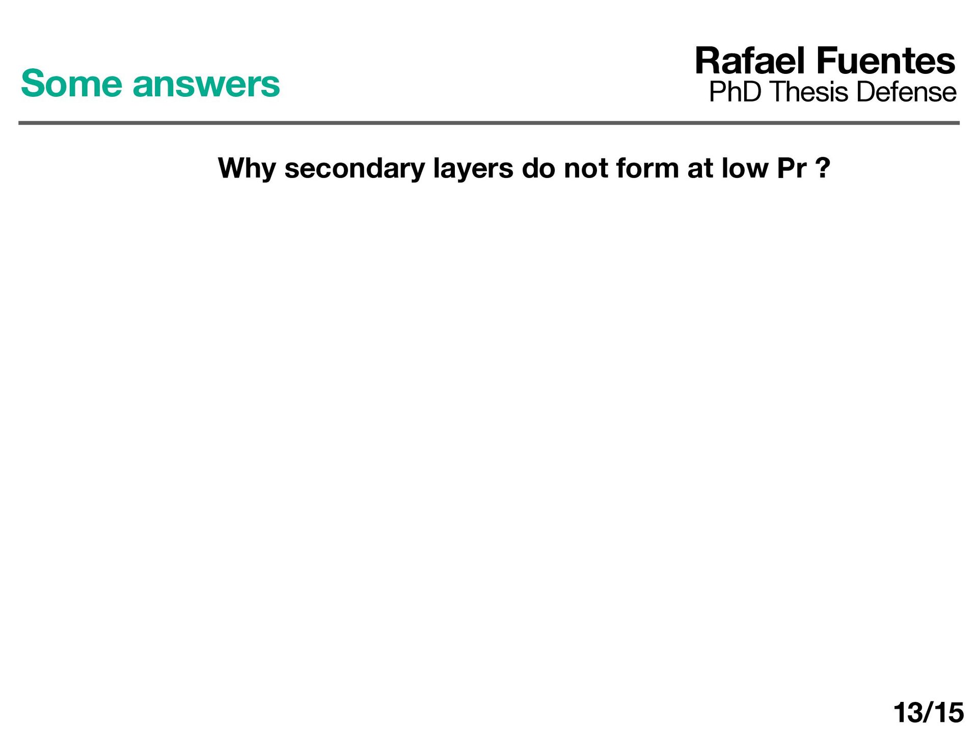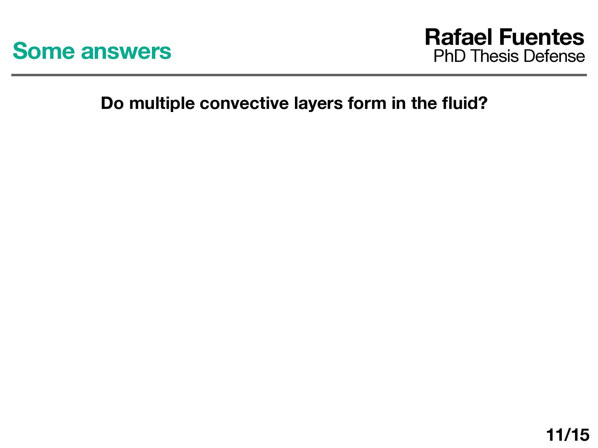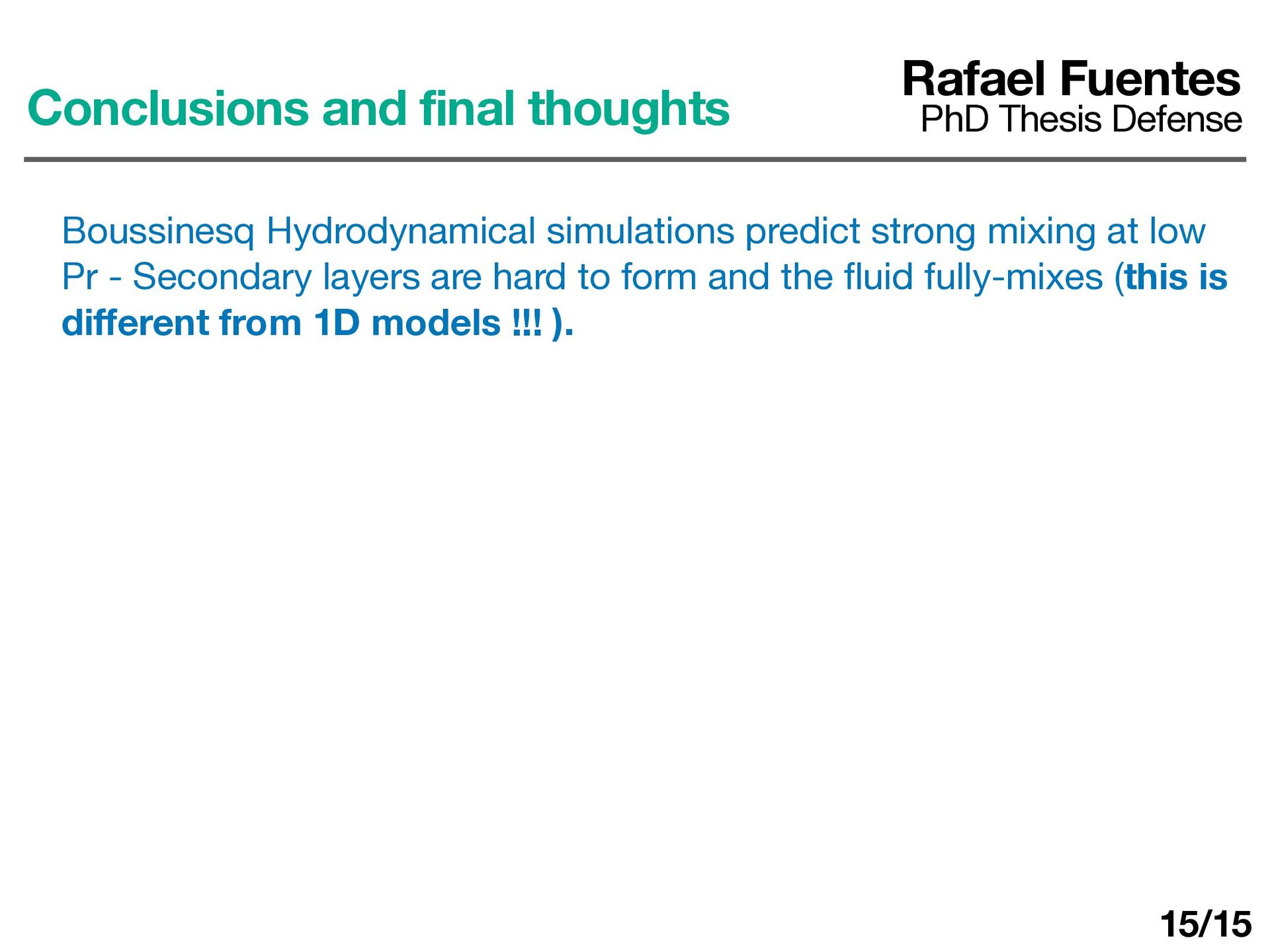 Secondary layers are hard to form and the fl uid fully-mixes (this is di ff erent from 1D models !!! ). Rafael Fuentes PhD Thesis Defense Conclusions and final thoughts 15/15
