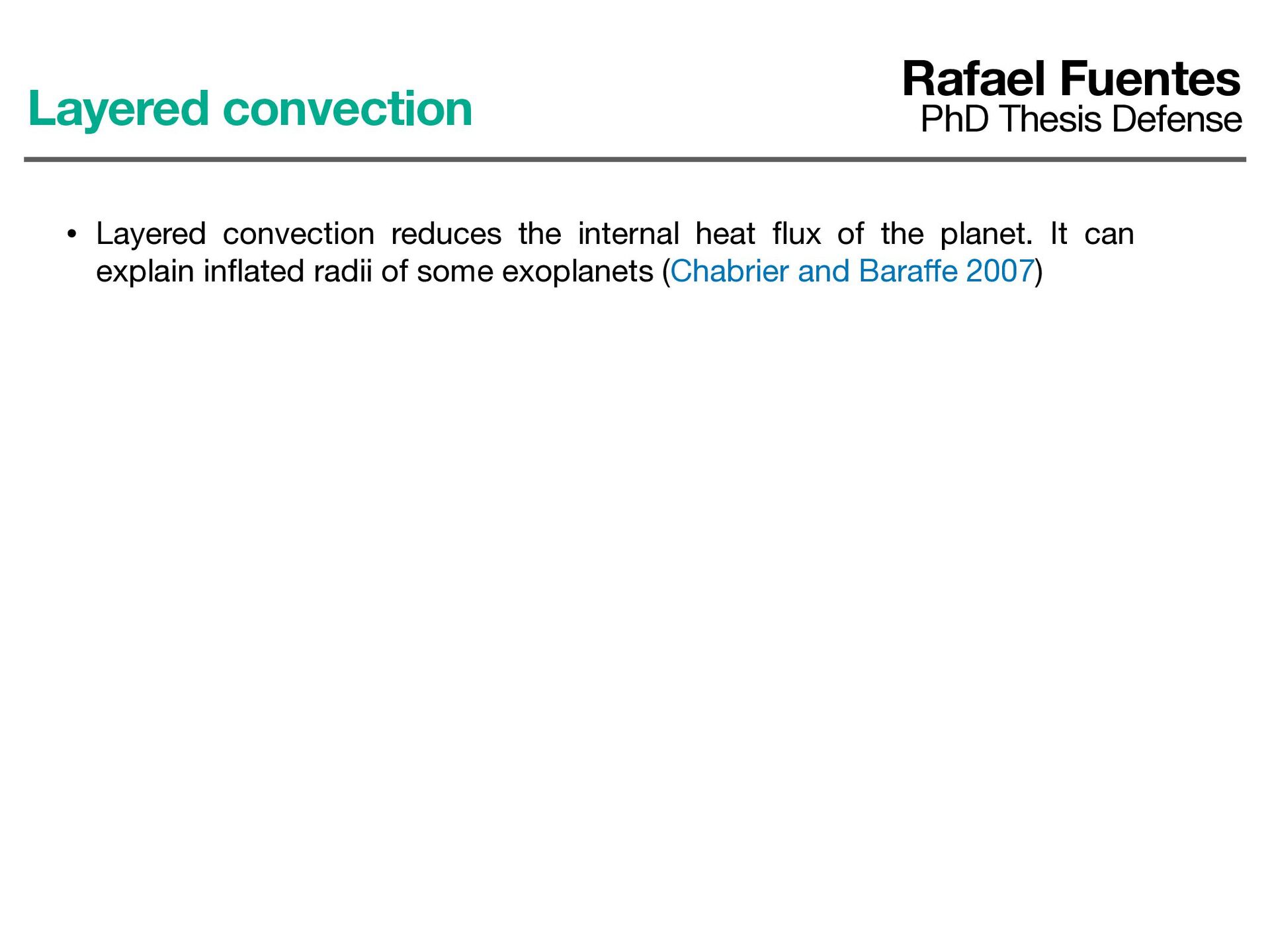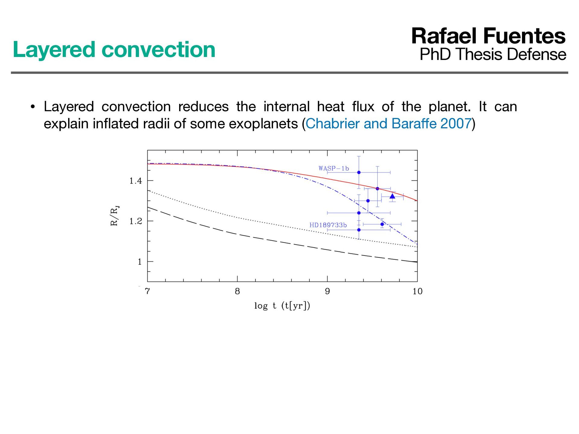 the planet. It can explain in fl ated radii of some exoplanets (Chabrier and Bara ff e 2007) Adiabatic models Models with layered convection Layered convection Rafael Fuentes PhD Thesis Defense
