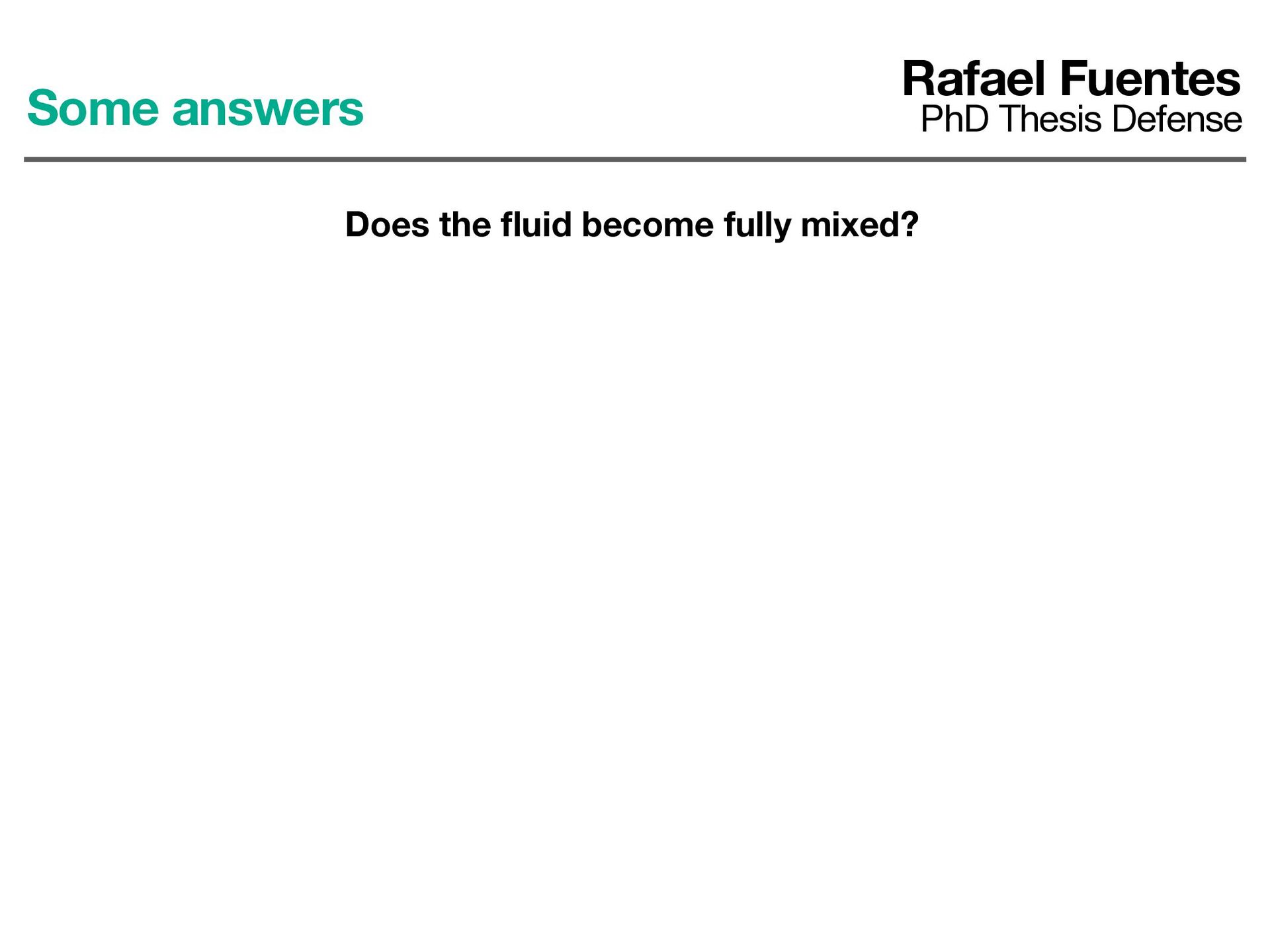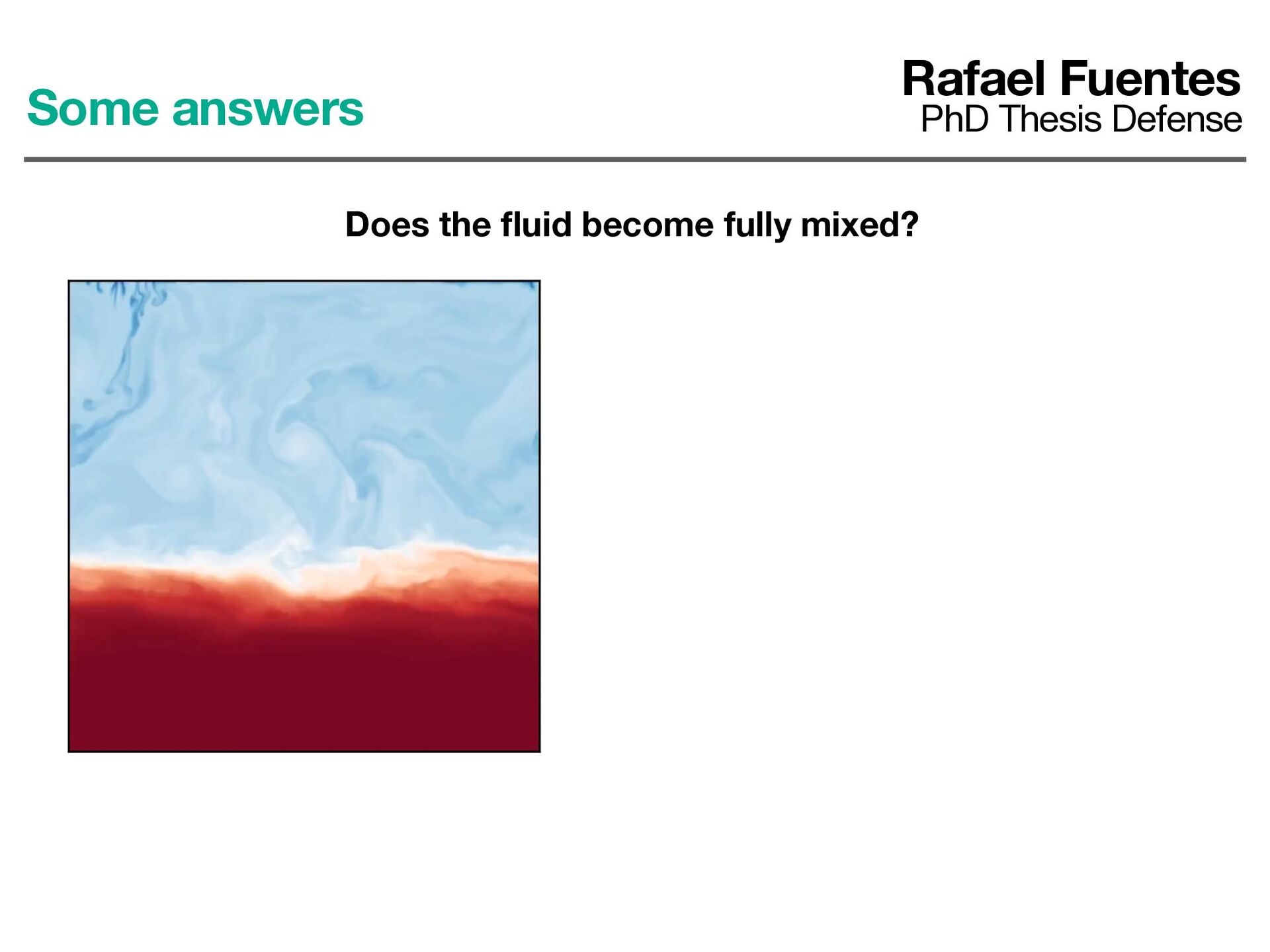 ows previously observed in 2D convection Some answers Rafael Fuentes PhD Thesis Defense Does the fl uid become fully mixed? 0.00 0.01 0.02 0.03 0.04 t/tdiÆ 102 103 104 105 vrms /vdiÆ hu2i1/2, L = H hw2i1/2, L = H