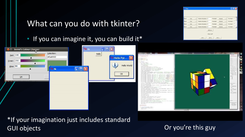 imagine it, you can build it* *If your imagination just includes standard GUI objects Or you’re this guy