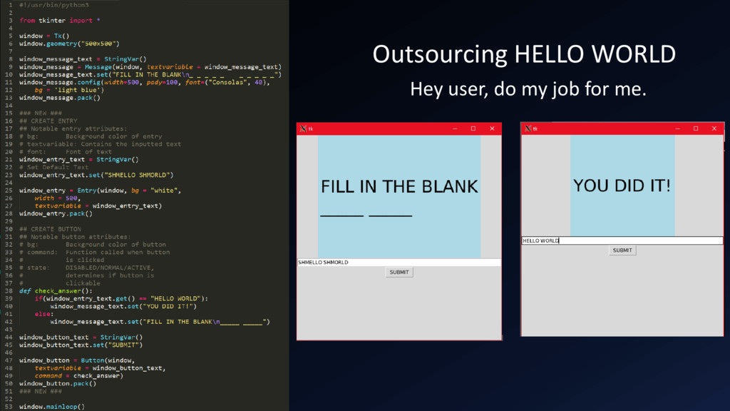 Outsourcing HELLO WORLD Hey user, do my job for me.