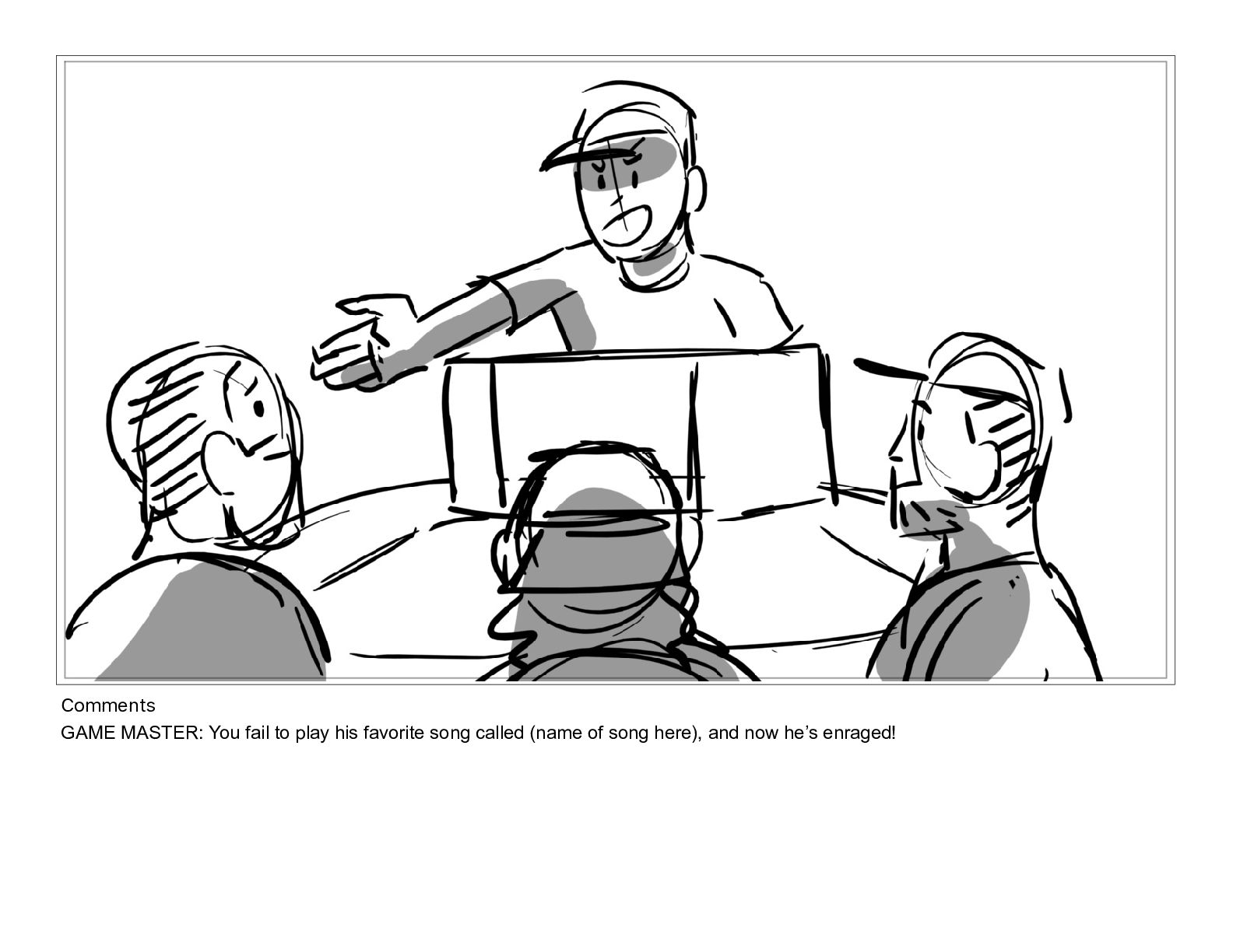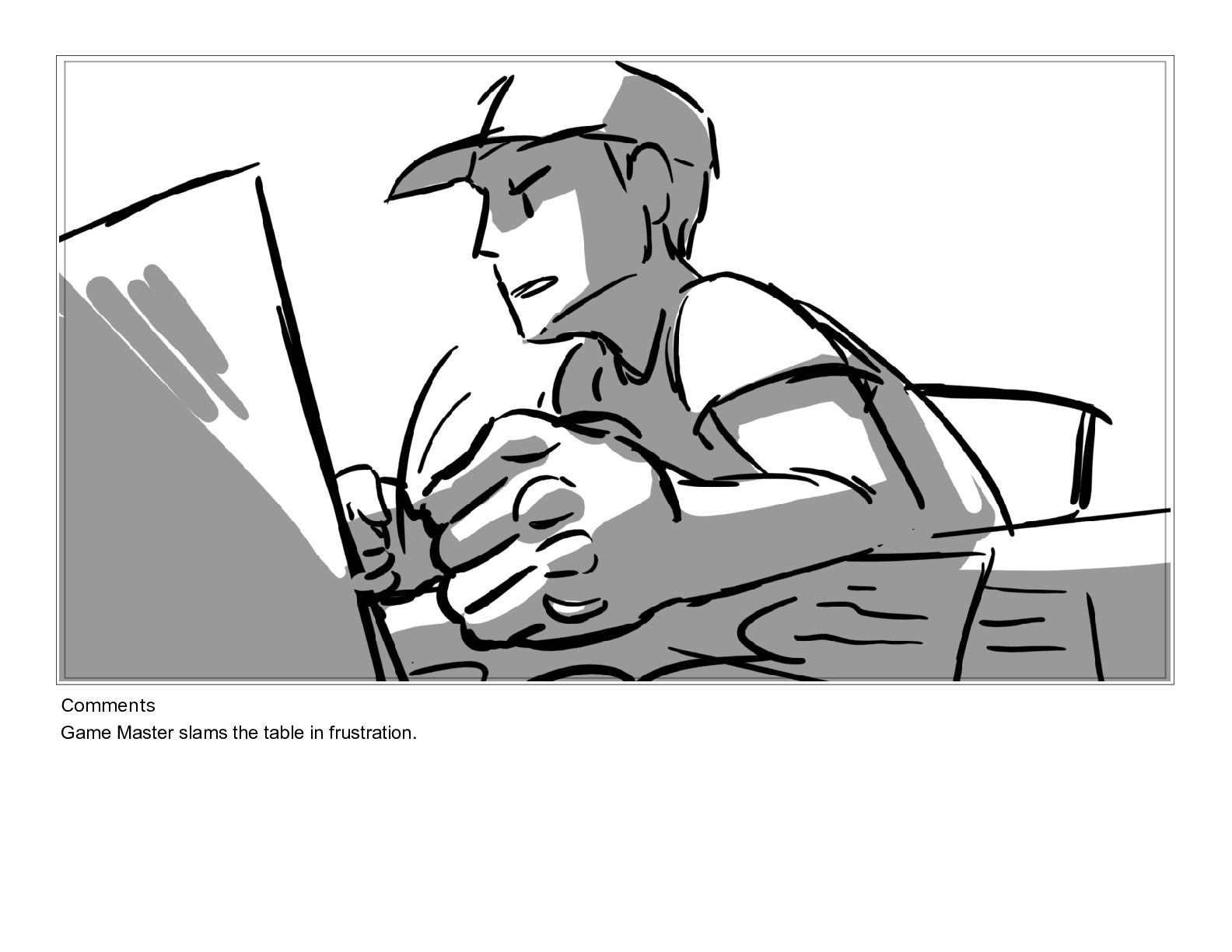 Comments Game Master slams the table in frustration.