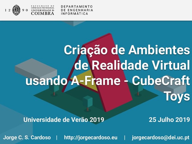 Slides for the Summer University 2019 - University of Coimbra, about using A-Frame for creating a Web-based VR experience. This year, I'm using Cubecraft images to show how to recreate the 3D Cubecraft figures.