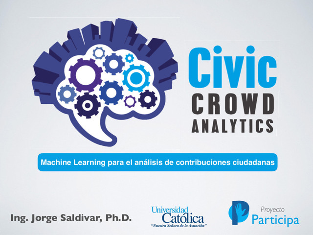 de la ciudad de Palo Alto, CA. • Transporte urbano en específico. Cinco temáticas: visión global del transporte urbano, vehículos no motorizados, transporte privado, transporte público, movilidad para personas con discapacidad • Pregunta de investigación: ¿hasta que punto el input de los ciudadanos fue tenido cuenta en el borrador del plan maestro de transporte urbano? • Dataset: 184 ideas de ciudadanos + 132 propuestas de los representantes + borrador 12