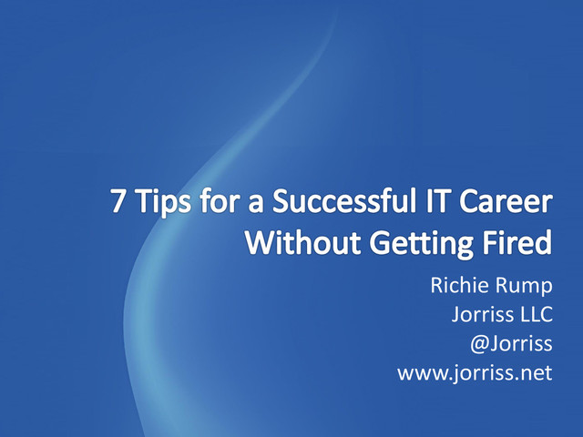 Do you want to get ahead in your career? Do you want more money, a bigger office and a better title? Well, this presentation won't promise you any of that but it will present some tips that will make you more valuable in the marketplace all without getting fired. It will also show you how to get noticed and how to learn the newest technologies. Along the way, I'll also share some personal insight and stories from my own career journey.