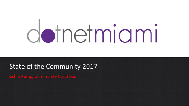 This month dotNet Miami will be turning five! In this intro presentation, dotNet Miami Community Caretaker, Richie Rump, will talk about the history and future of dotNet Miami. But maybe more importantly, Richie will share the vision and goals of dotNet Miami and how you can get involved.