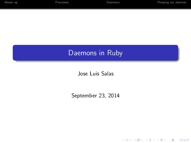 info: http://codeincomplete.com/posts/2014/9/15/ruby daemons/ Working with unix processes by Jesse Storimer lib/unicorn/launcher.rb in Unicorn gem daemons, dante and daemon-kit gems Linux System Programming: Talking Directly to the Kernel and C Library Understanding the Linux Kernel Questions?