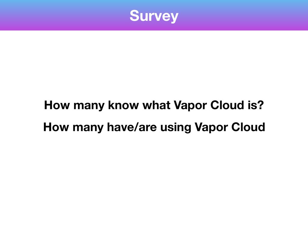Slides for my presentation of Vapor Cloud 2 Alpha, slides was a quick introduction before the live demo.