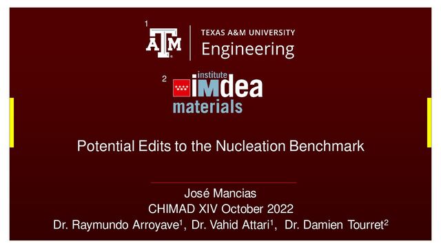 In this presentation, I suggested some changes to the nucleation benchmark as it is written in PF-Hub (https://pages.nist.gov/pfhub/benchmarks/benchmark8.ipynb/).