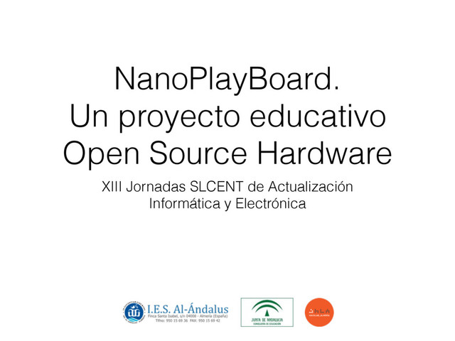 «NanoPlayBoard: Un proyecto educativo Open Source Hardware» es una charla de: