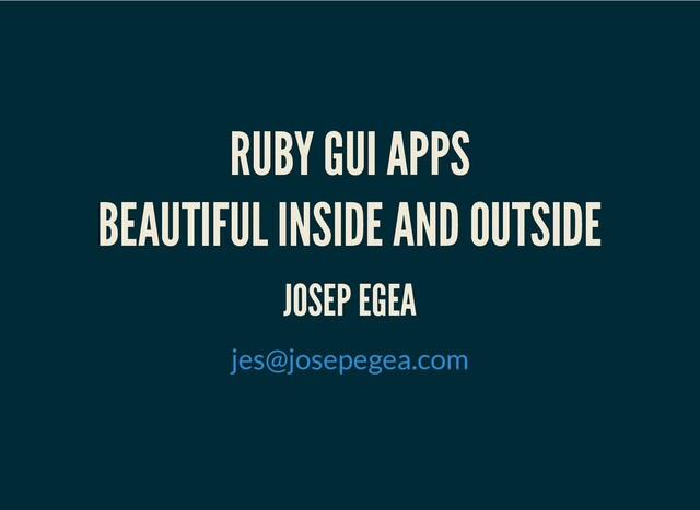 In this talk we'll have some fun writing desktop GUI Apps using Ruby. And will experience how the end result is much more than the sum of the parts.