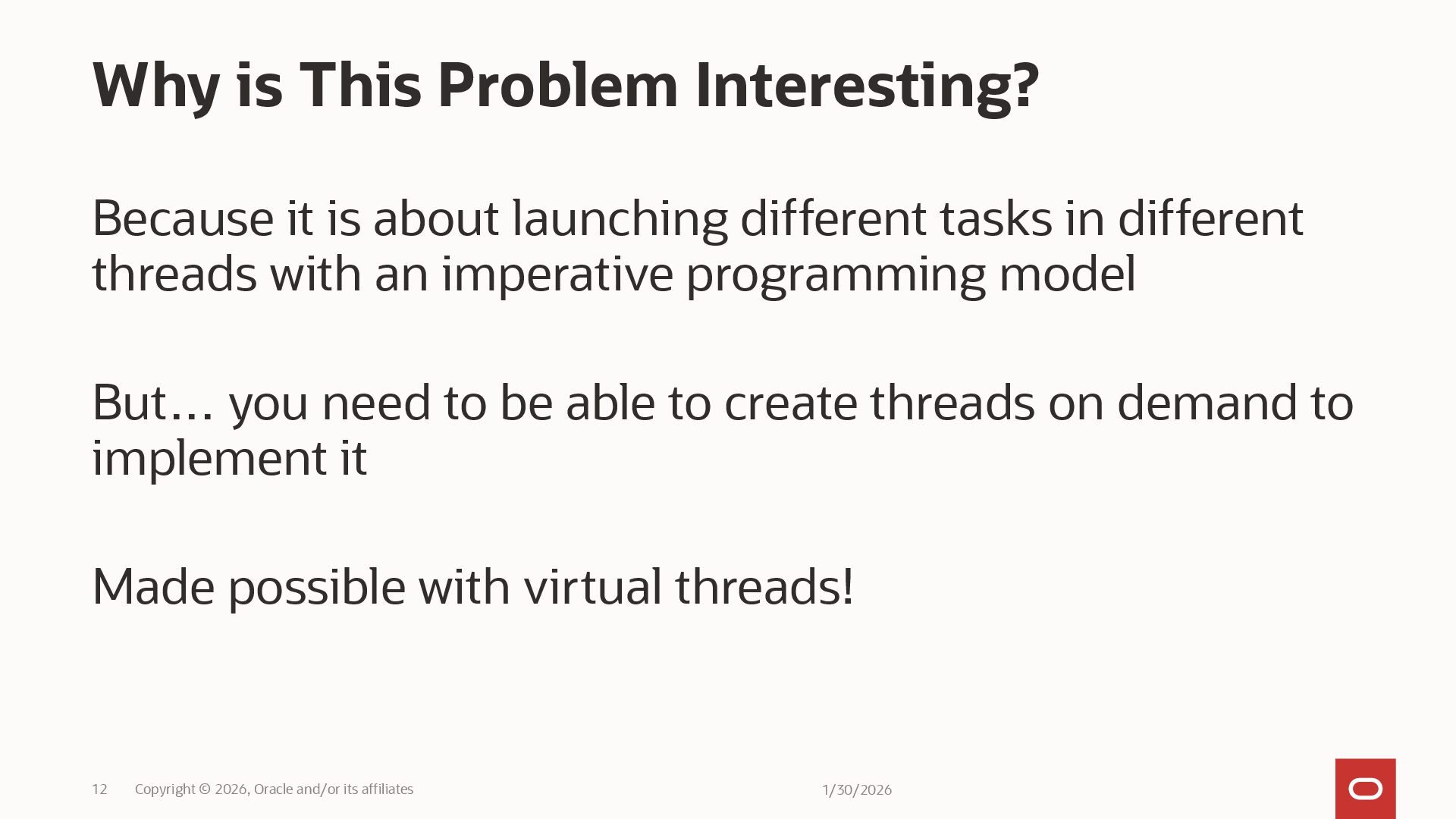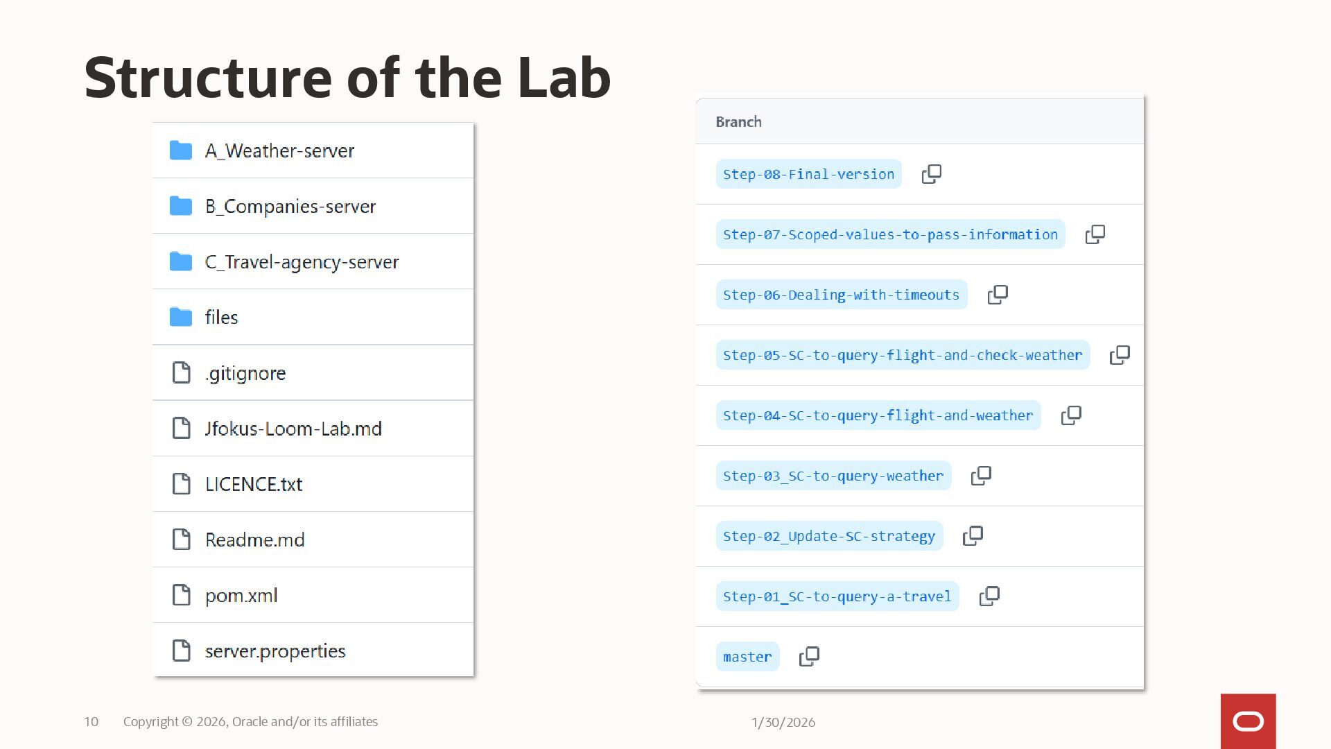 One of the most exciting features delivered by JDK 21 are Virtual Threads, developed by the Loom project. They promise to enable the "simple thread-per-request style to scale with near-optimal hardware utilization". Before Virtual Threads, this could only be achieved with reactive programming, which provides excellent throughput, but with patterns that are difficult to write, read, debug, and profile. It offers outstanding performance, but at the expense of maintainability. This hands-on lab guides you through writing a virtual thread-based application that utilizes structured concurrency to parallelize requests and scoped values to pass sensitive information without relying on method parameters. It consists in the guided, step by step refactoring of a legacy application to a modern Java application based on the use of Data Oriented Programming and Structured Concurrency. You will see the patterns of code that the Loom project gives you to achieve the same throughput as a classical reactive application. You will then be able to compare the code patterns of both approaches to choose which one you prefer.