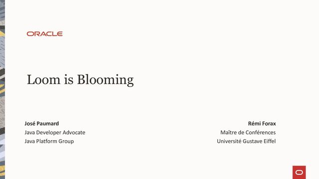 The Loom project has been under work for several years now. Preview versions are available, that give an idea of what it will bring to the Java platform. We can see what patterns we will be able to use, and the performances it will bring. Our good old Threads, created more than 25 years ago, will see a new kind of lightweight threads. Creating a thread will be easier and much cheaper, allowing the creation of millions of them in a single JVM. These new virtual threads bring with them new notions, that will be covered in this talk. You will see structured concurrency, reactive and asynchronous programming, how you can create actors on this new concurrent programming model. You will learn about ScopeLocal, a new way of dealing with ThreadLocal variables, about StructuredExecutor, and about synchronization. A lot of code is shown in this presentation, you will see how Loom can change the way you write your code, the performance gains you may expect, both in your application and for the Java Virtual Machine itself.