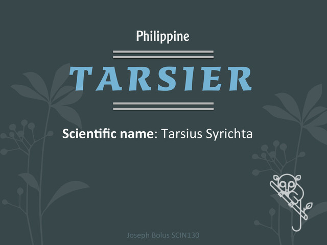The Philippine tarsier (Tarsius syrichta) is a species of tarsier indigenous to the Philippines. It can be found in the southeastern part of the archipelago, explicitly on the islands of Bohol, Samar, Leyte and Mindanao. It is a member of the approximately 45-million-year-old family Tarsiidae.