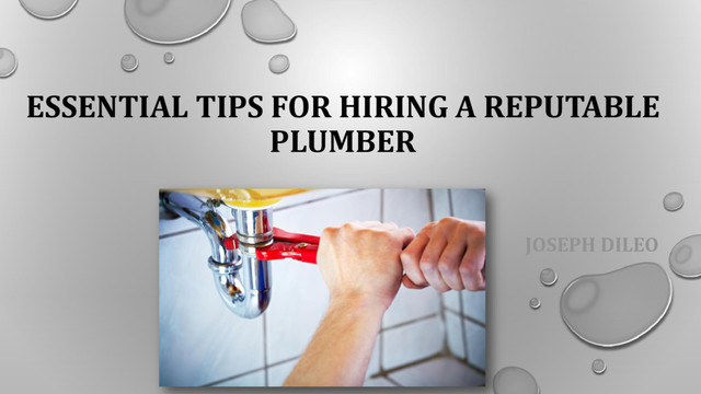 Plumbers are a vital piece of our life. At some point or another we all need them. In any case, Before picking a respectable Plumber, you have to think of some as vital things. Joseph Dileo have shared PPT comprises of Essential tips for hiring a Plumber.