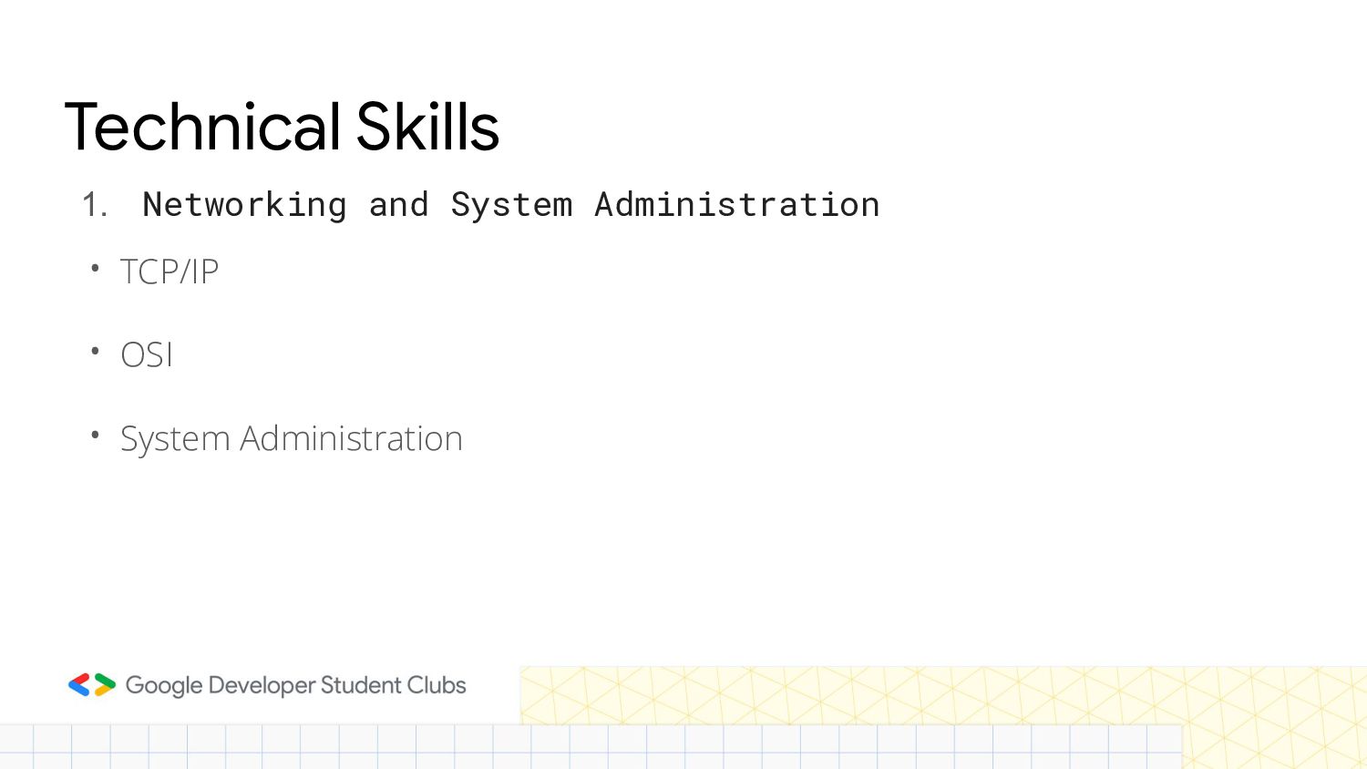 Technical Skills • TCP/IP • OSI • System Administration 1.