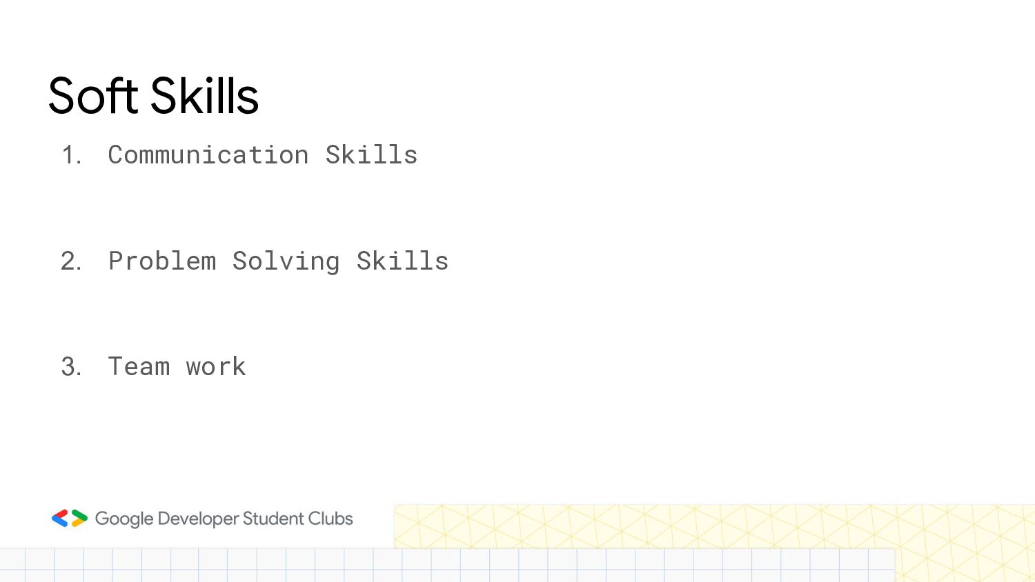 Soft Skills 1. Communication Skills 2. Problem Solving Skills 3.