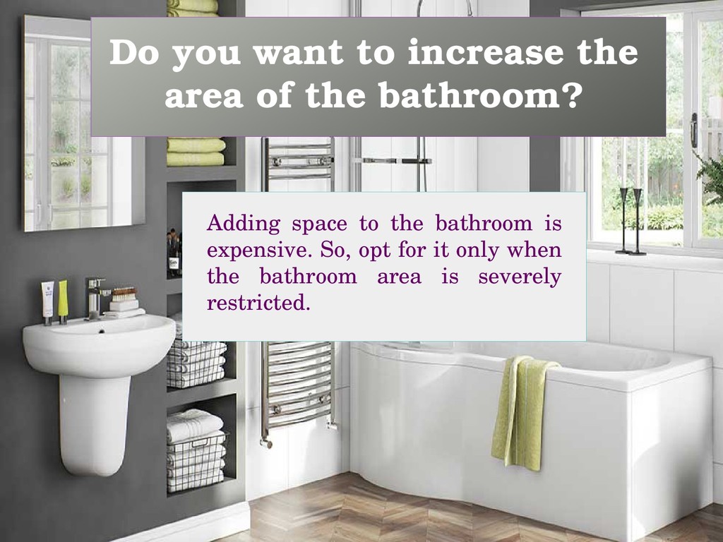 Adding space to the bathroom is expensive. So, opt for it only when the bathroom area is severely restricted.