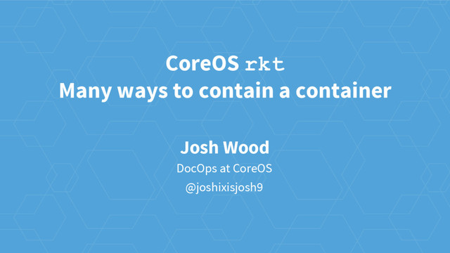 features of rkt/appc • Reduced isolation for privileged components • chroot file system isolation only • Has access to host-level mount, network, PID name spaces • Method for shipping k8s kubelet in CoreOS