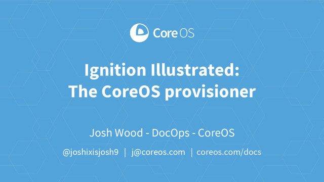 management Atomic provisioning (“Don’t reconfigure. Reprovision.”) Static config - no “2-stage cloud-config” invoking a sh script Same semantics across environments Why use Ignition?