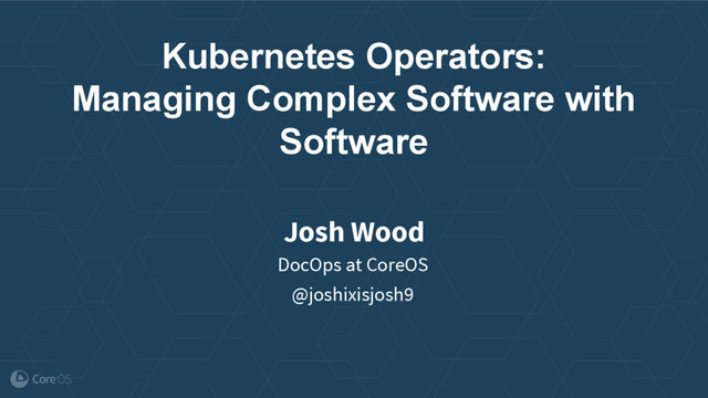 Kubernetes Operators: Managing Complex Software with Software Josh Wood DocOps