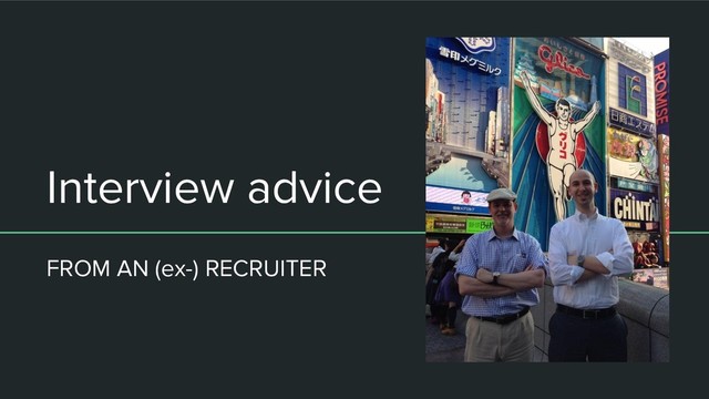 Lightning talk presentation on tips for interview from an experienced recruiter.