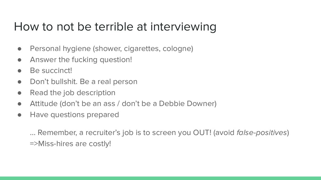 - How not to suck at interviews