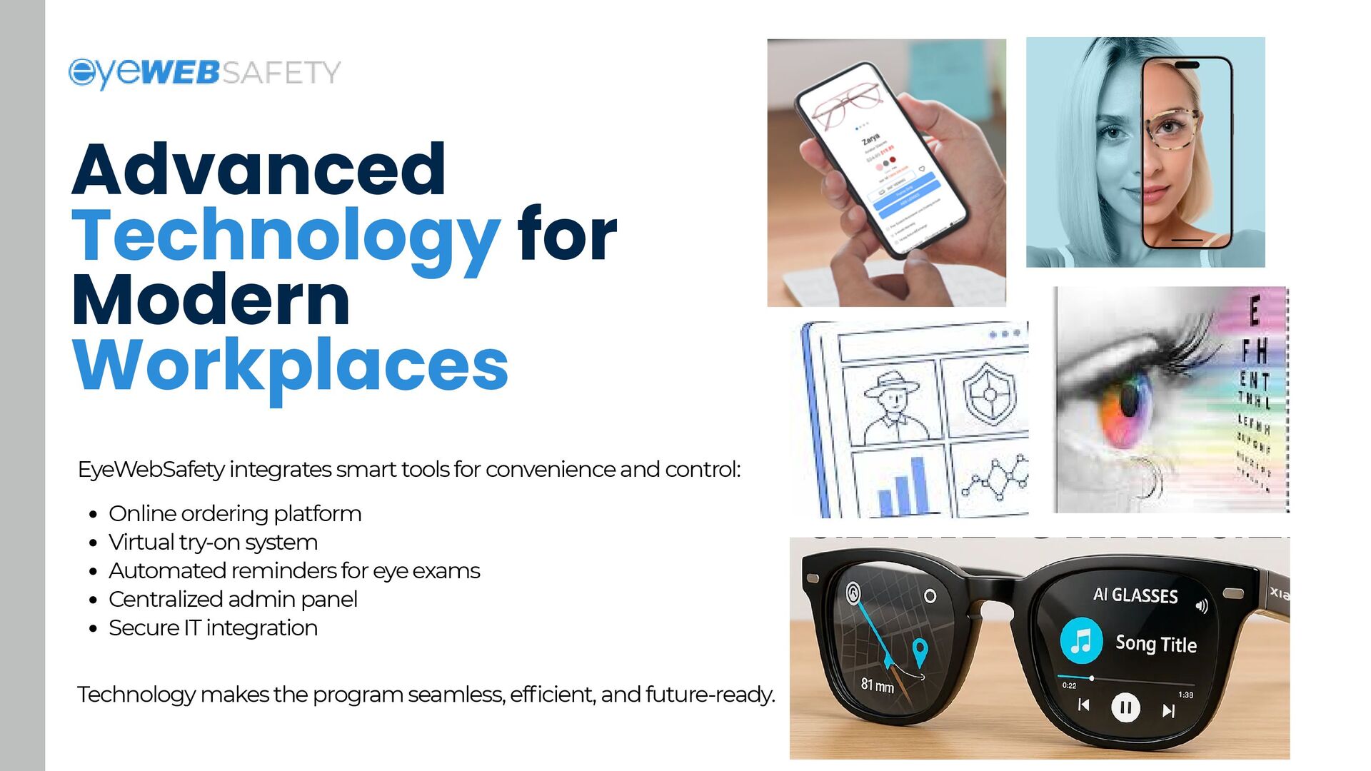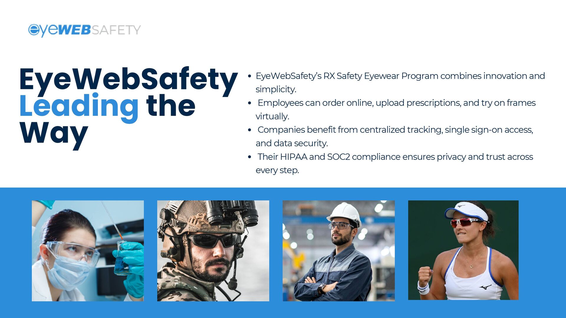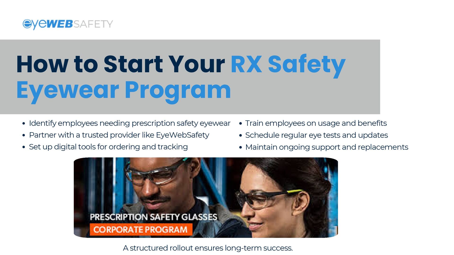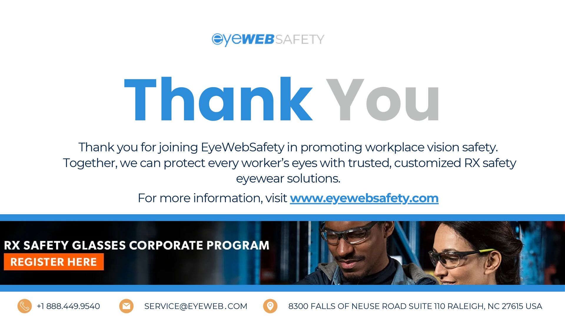 Every job deserves clear vision and complete protection. RX Safety Eyewear Programs combine prescription accuracy with industrial-grade safety standards. EyeWebSafety brings technology, comfort, and compliance together in one simple platform. Keep your employees safe, confident, and focused at work.