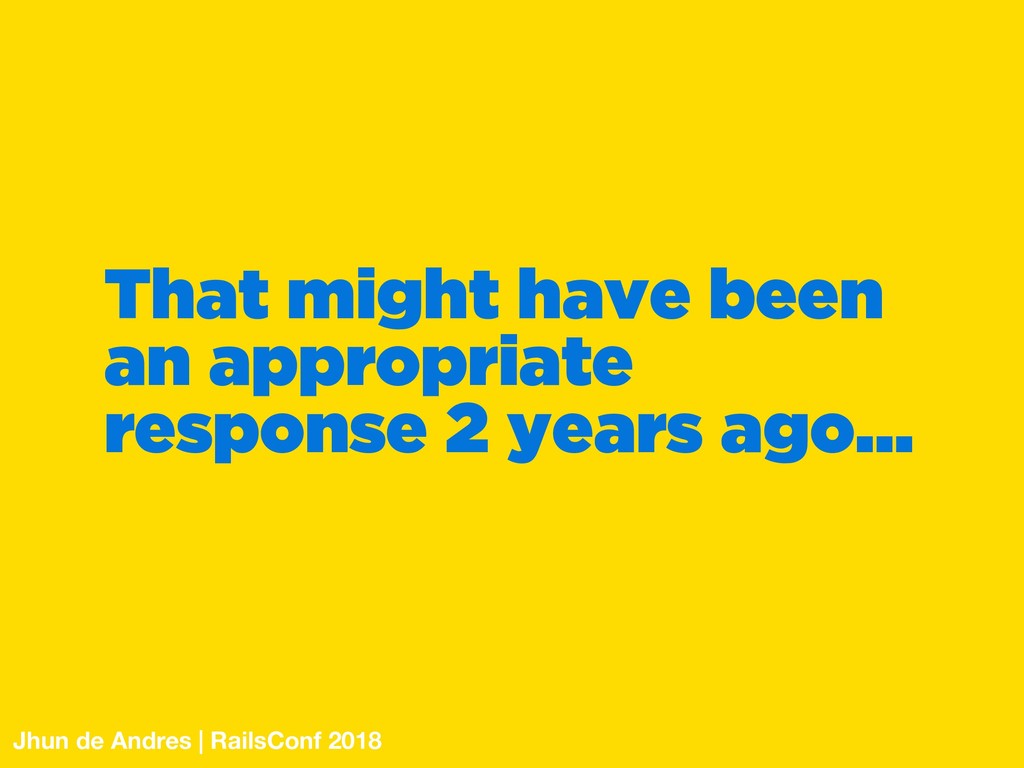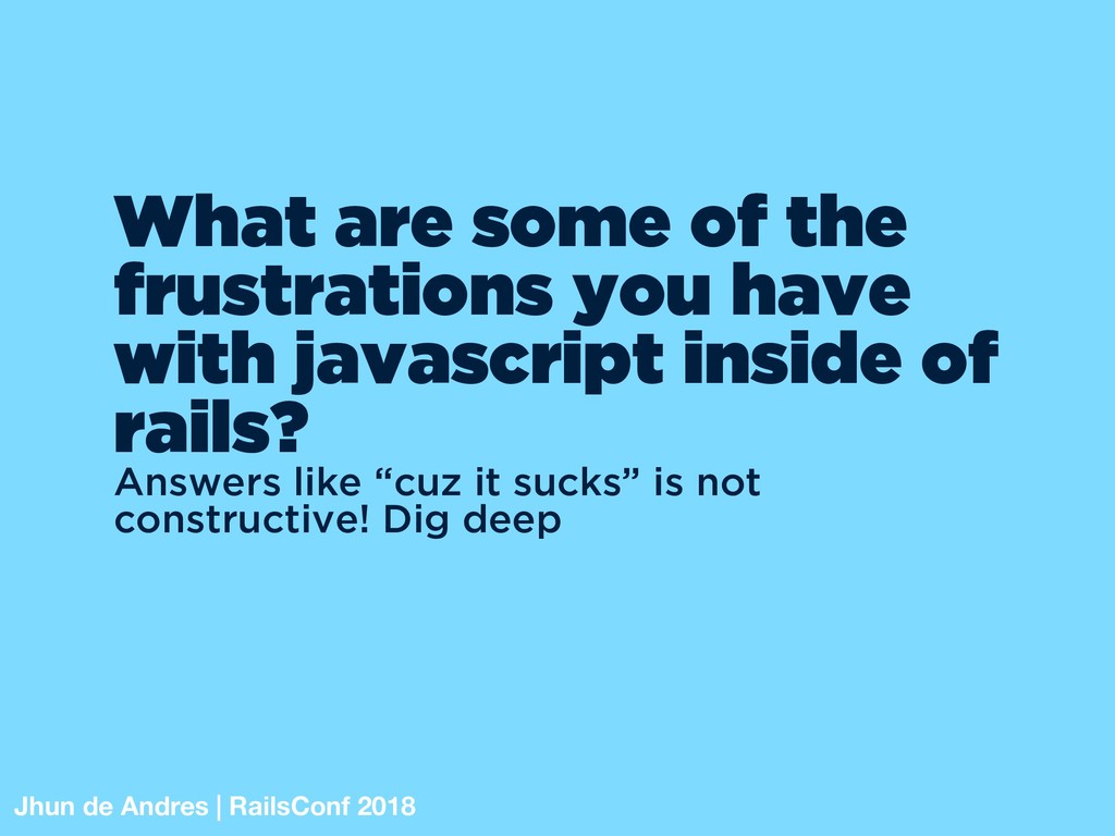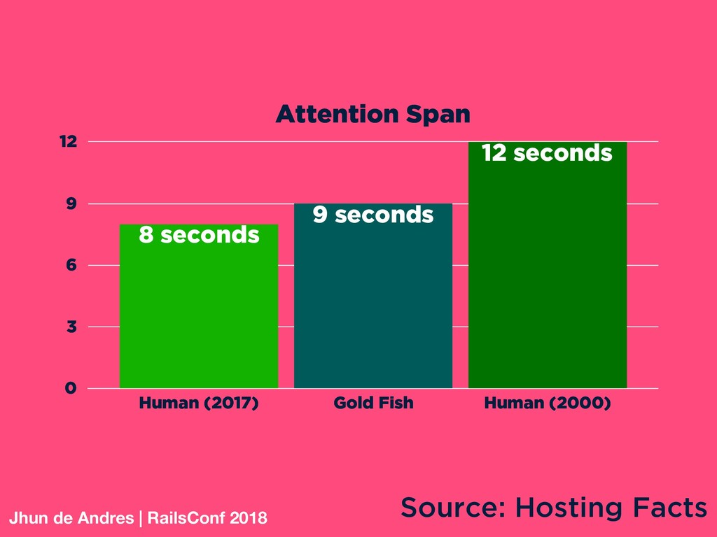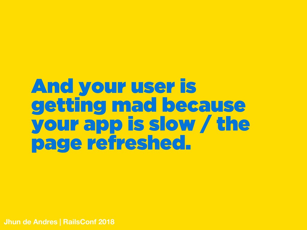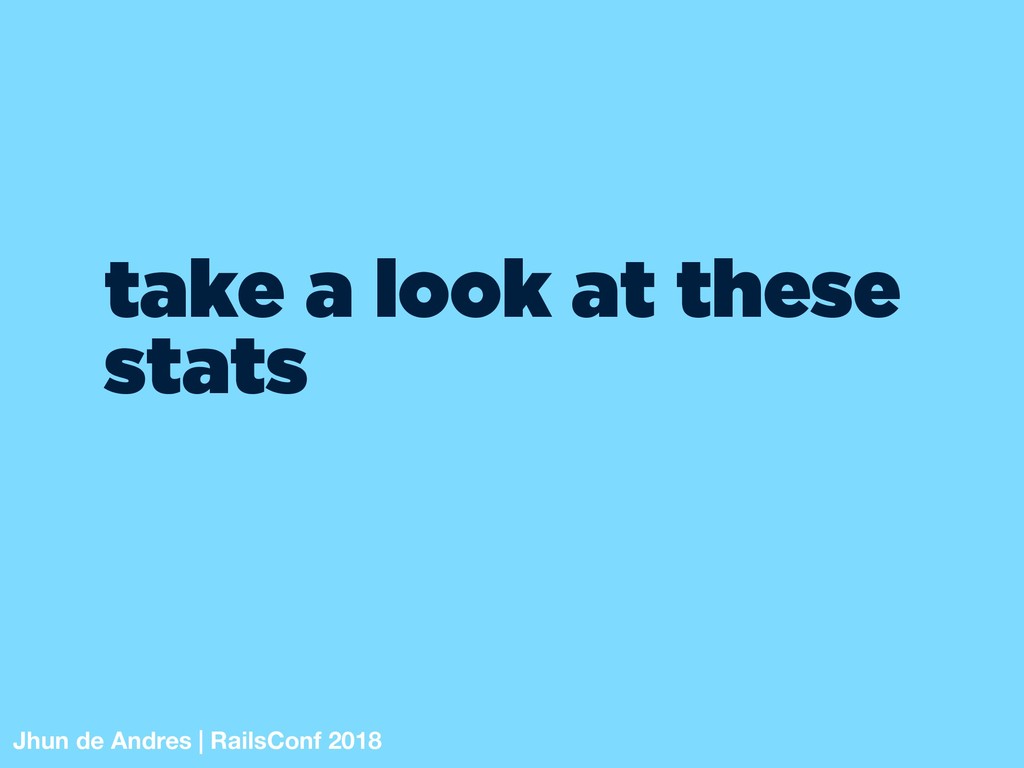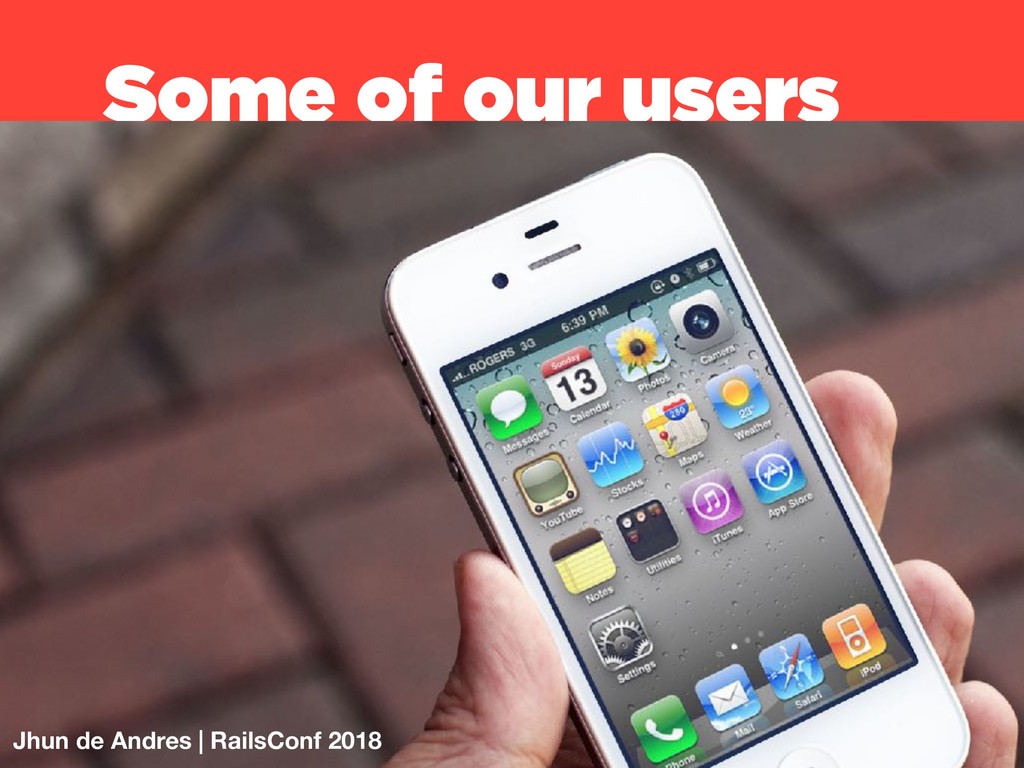 30 45 60 47.79% 42.16% 52% Internet Traffic Mobile (2017) Mobile (2016) Desktop (2017) 0 15 30 45 60 47.79% 42.16% 52% Source: Hosting Facts There are more mobile Internet users than desktop Internet users. There are 3.5 billion global mobile Internet users as of August 2017. “ Jhun de Andres | RailsConf 2018