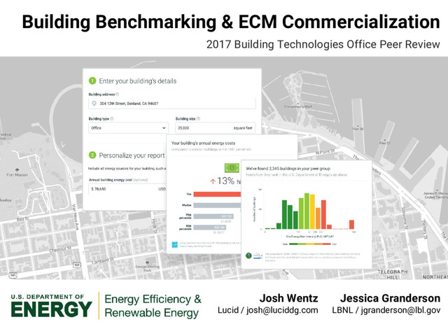 DOE tool architecture, APIs, ECMs, facility types, characteristics, underlying analysis in CBES, PM, and BPD ◦ LBNL provided Lucid design guidance and technical assistance to integrate desired benchmarking and ECM analysis capabilities into BuildingOS.com (coding examples, testing and verification process, user presentation). ◦ Lucid leveraged Energy Star Target Finder & DOE BPD to create a public benchmarking web tool ◦ LBNL expanded CBES functionality for applicability beyond CA climates and measures. KEY ISSUES ◦ Architecture: Ensuring compatibility with cloud-based SaaS infrastructure ◦ User Experience: Ability for users to understand the information and transform the information into actions DISTINCTIVE CHARACTERISTICS ◦ Small Business Vouchers Pilot Program provided industry access to Laboratory expertise, supports lab-to-market technology and knowledge transfer. ◦ Integration of federally-funded tools & capabilities into commercial software offering to enhance the state of the technology. WHY WHA T WHERE HOW