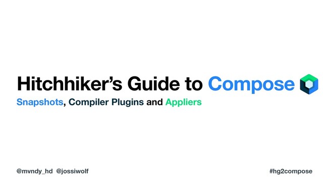 } HelloWorld(greeting = name.value) } @Composable fun HelloWorld(greeting: String) { println("Hello, $greeting!") } #hg2compose S N A P S H O T @mvndy_hd @jossiwolf
