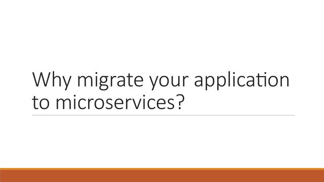 Application as suite of services • High cohesion, low coupling, autonomous and independent • Simple and agnostic communication, HTTP, AMPQ Why migrate your application to microservices?