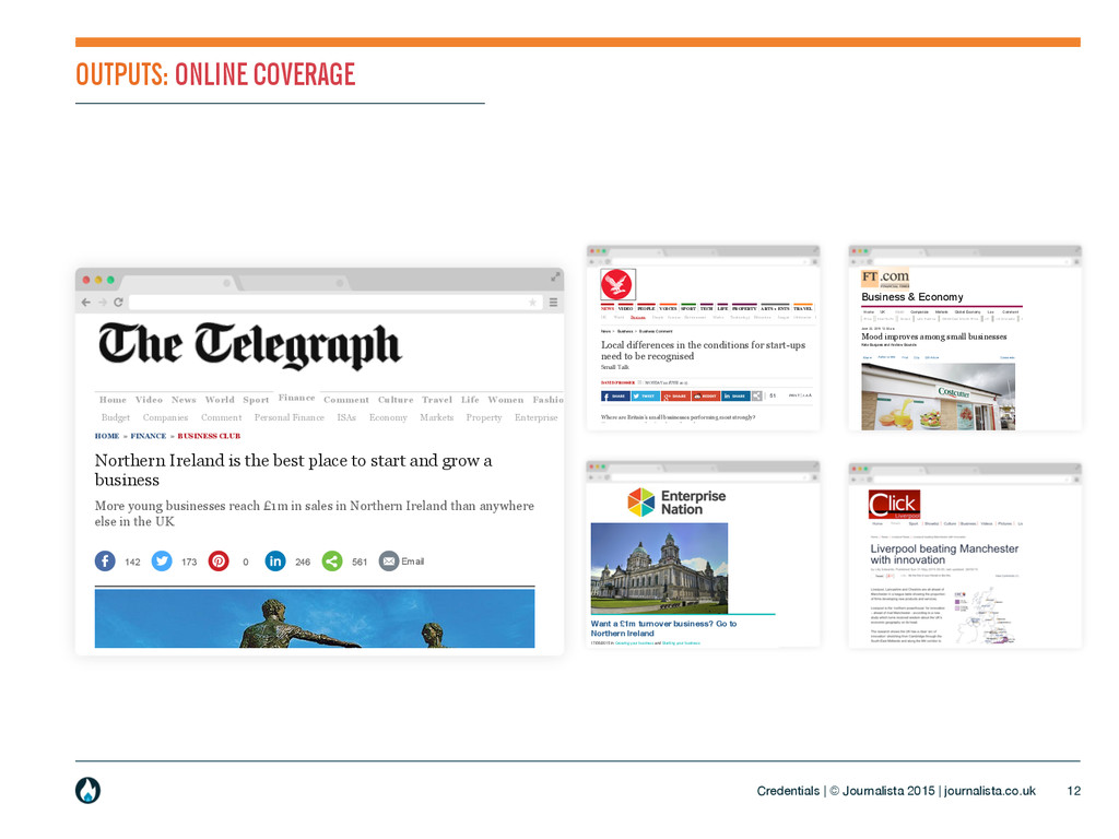2015 Northern Ireland is the best place to start and grow a business More young businesses reach £1m in sales in Northern Ireland than anywhere else in the UK Search - enhanced by OpenText Home Video News World Sport Finance Comment Culture Travel Life Women Fashion Luxury Tech Cars Film Budget Companies Comment Personal Finance ISAs Economy Markets Property Enterprise Deals Telegraph Investor HOME » FINANCE » BUSINESS CLUB Email 142 173 0 246 561 News > Business > Business Comment NEWS VIDEO PEOPLE VOICES SPORT TECH LIFE PROPERTY ARTS + ENTS TRAVEL MONEY INDYBEST STUDENT OFFERS UK World Business People Science Environment Media Technology Education Images Obituaries Diary Corrections Newsletter Appeals PRINT A A A Where are Britain’s small businesses performing most strongly? If your instinct is that London, where the economy is growing faster than in the rest of the country, is the place to look for small business success, you’re right – but also wrong. Research published last week jointly by the Enterprise Research Centre and the Business Growth Service paints a fascinating picture of the geographical diversity of small businesses – and suggests the progress they make and the challenges they face are far more nuanced than policymakers may understand. Take London, for example. With around 90 start-up businesses for every 10,000 people in the population over the past 12 months, it is miles ahead of anywhere else on business creation (the average figure across the country is 50 or so). But London is close to the bottom of the table on start-up survival rates – just one in two businesses started in the capital three years ago are still trading. Looking for a high-growth business? Then your best bet is to talk to start-up companies in Northern Ireland, where 11 per cent of launches in 2011 were turning over at least £1m by 2014 – the national average is closer to 6 per cent. Or maybe try the Thames Valley, where 9 per cent of companies with a turnover of between £1m and £2m in 2011 had grown that to £3m by 2014, a larger proportion than anywhere else. The research also suggests that businesses based in different part of the country are struggling to overcome different types of obstacles. In London, the most significant issue appears to be Local differences in the conditions for start-ups need to be recognised Small Talk DAVID PROSSER MONDAY 22 JUNE 2015 51 ADVERTISING More ON THIS TOPIC LSE chief sees debt as threat to economy UK retail spending rises 4.6% in May Start-up map shows enterprise hotspots UK construction data show firmer recovery IN UK BUSINESS & ECONOMY Graduates set a record for finding jobs Is a new City era dawning? Pellets add fuel to fire in Liverpool port Wealth managers shun moderately rich Sign up now FirstFT is our new essential daily email briefing of the best stories from across the web Share Author alerts Print Clip Gift Article Comments June 22, 2015 12:02 am Kate Burgess and Andrew Bounds The mood of entrepreneurs and small businesses has picked up in the second quarter since the election, with revenues, profits, staff levels and wages all rising. Entrepreneurs’ commitments to invest more in their businesses over the next 12 months reached highs not seen since 2010, according to a survey by the Federation of Small Businesses. The FSB’s findings follow work published last week by academics at the Enterprise Research Centre in Birmingham who said the rate of growth among the UK’s small and medium-sized enterprises and start- ups was back at pre-financial crash levels in 2008. The FSB’s findings also echo a more positive mood among small quoted businesses, with one manager of a portfolio of investments in fledgling public companies saying she had not seen such confidence for years. She said “the lid lifted” after the election, ending months of uncertainty. Official data published last week showed average weekly pay for employees increased 2.7 per cent in the three months to April and real earnings growth was at rates not seen since September 2007. The FSB, which has 200,000 members, many self- employed, said levels of spare capacity, which affects interest rate decisions, have dropped from 47.7 per cent to 40.7 per cent. But it added rising confidence was lifting productivity “which should be encouraging to policy makers, who have been grappling with the issue of low productivity growth Home UK World Companies Markets Global Economy Lex Comment Management Personal Finance Life & Arts Africa Asia-Pacific Europe Latin America Middle East & North Africa UK US & Canada Science & Environment World Blog Tools Mood improves among small businesses ©Costcutter ft.com > uk > Business & Economy You are signed in Northern Ireland is home to the most entrepreneurs who achieve a £1m turnover within three years of starting their company, a new report that plots UK small business growth has shown. According to the Enterprise Research Centre (ERC) more Northern Irish small companies reached the 'magic milestone' between 2011 and 2014 than anywhere else in the UK. The country has a 10% average for firms hitting the mark with small companies in the west and south regions of the country leading the way followed by 9.7% of companies based in Belfast. The Northern Ireland average for £1m turnover firms compares to 7.9% in London and 6.2% in England overall. Cumbrian firms have the lowest proportion with 2.2% reaching £1m. Professor Mark Hart, deputy director of ERC said: "Part of the story in Northern Ireland is long-standing policy infrastructure, a commitment by government and its agencies to invest in the enterprise agenda from startup through to growth. "Local policy, through the Department of Enterprise, Trade and Investment and its agency Invest NI, working with partners on the ground, seems to be making a difference. Sign In Become an EN member Want a £1m turnover business? Go to Northern Ireland 17/06/2015 in Growing your business and Starti