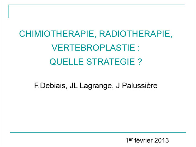 la vertébroplastie ? Effet de lyse cellulaire lié à l’hyperthermie au moment de la polymérisation du ciment non constant, reste limité à l’interface avec le ciment; hyperthermie brève in vivo et variable selon les ciments ! - Dahl OE 1994: effet cytotoxique in vitro - Urrutia J, Spine 2008 : évaluation des effets histologiques de PMMA sur vertèbres de lapin: lésions de nécrose focale dans ½ des cas - Ashamalla H 2009 : combinaison de samarium153 et ciment en intra-vertébral - Kaneko TS 2012 : Utilisation de ciment radioactif P-32
