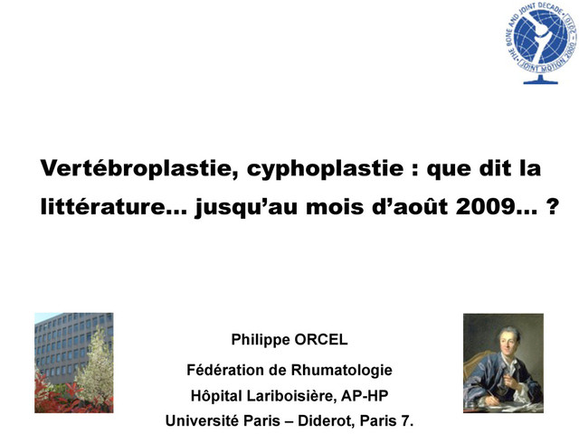 sont favorables sur des données ouvertes : séries, études non randomisées, études non contrôlées. Les données de tolérance sont excellentes dans toutes les études. L’efficacité sur les douleurs et la supériorité de la cyphoplastie par ballonnet (redressement de la cyphose) doivent être évalués formellement dans un essai contrôlé randomisé, c’est l’objectif majeur du programme STIC cyphoplastie…!