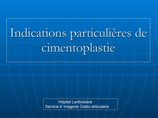 Indications particulières de cimentoplastie Hôpital Lariboisière Service d’ imagerie Ostéo-articulaire