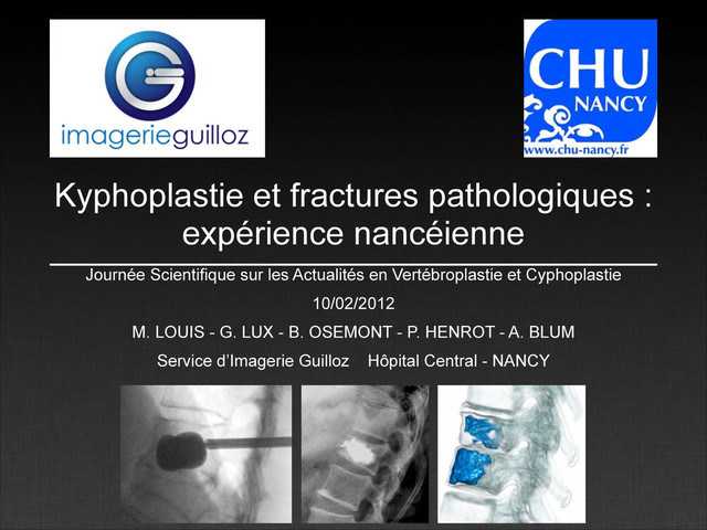 ! Balloon kyphoplasty versus non-surgical fracture management for treatment of painful vertebral body compression fractures in patinets with cancer: a multicentre, randomised controlled trial J. Berenson, R. Pflugmacher, P. Jarzem, J. Zonder, K. Schechtman, J. B. Tillman, L. Bastian, T. Ashraf, F. Vrionis Lancet Oncol 2011 ! Balloon kyphoplasty in the treatment of metastatic disease of the spine: a 2-year prospective evaluation R. Pflugmacher - R. Taylor - A. Agarwal - I. Melcher - A. Disch - N. P. Haas - C. Klostermann Eur Spine J (2008)