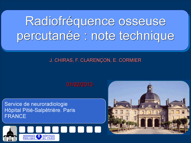 Pitié-Salpêtrière. Paris FRANCE 01/02/2013 Radiofréquence osseuse percutanée : note technique