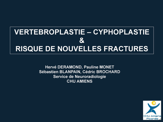 Etudes Biomécaniques • Etudes de « cohortes » Kobayashi N… Acad Radiol 2009, 16, 136-43 Prophylactic vertebroplasty: cement injection into non-fractured vertebral bodies during percutaneous vertebroplasty.. 244 Patients consécutifs 89 Premiers patients → 22% Nouvelles Fractures 155 Patients suivants → 10% Nouvelles Fractures + 6 Sem